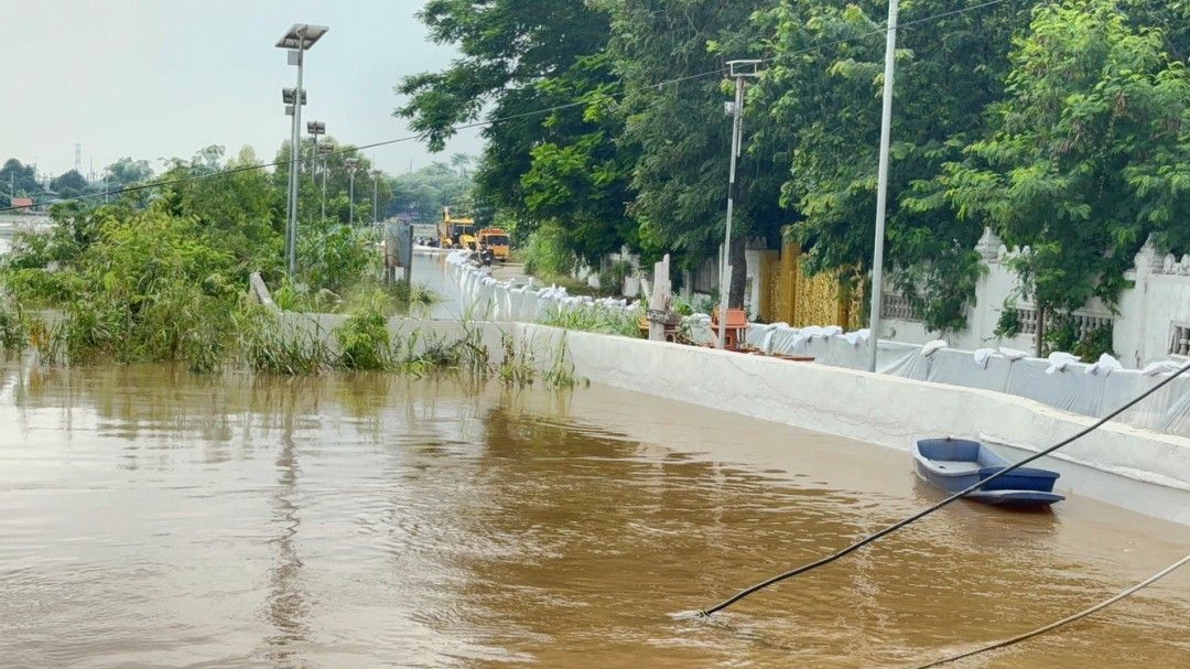 วันที่ 4 ตุลาคม 2568 สถานการณ์น้ำเจ้าพระยาไหลผ่านจังหวัดอ่างทองเพิ่มขึ้นอย่างต่อเนื่องหลังเขื่อนเจ้าพระยา จ.ชัยนาท ระบายน้ำเพิ่มขึ้นลงสู่ท้ายเขื่อน 2,500 ลบ.ม./วินาที ทำให้น้ำเจ้าพระยาเพิ่มขึ้นอย่างต่อเนื่อง เทศบาลเมืองอ่างทอง เร่งป้องกันเขตเศรษฐกิจ ศูนย์ราชการ กรอกกระสอบทรายเสริมจุดเสี่ยง เตรียมพร้อมอย่างต่อเนื่อง โดยพบว่าน้ำเจ้าพระยาตลอดแนวเขื่อนกั้นน้ำทั้งสองฝั่ง น้ำยังคงอยู่สูงกว่าระดับตลิ่ง อยู่สูงเลยขึ้นไปที่พนังเขื่อนกั้นน้ำ และมีน้ำไหลผุดลอดพนังเขื่อนกั้นน้ำตลอดเวลา ไหลออกมาตลอดแนวพนังกั้นน้ำสองฝั่งแม่น้ำเจ้าพระยาทาง