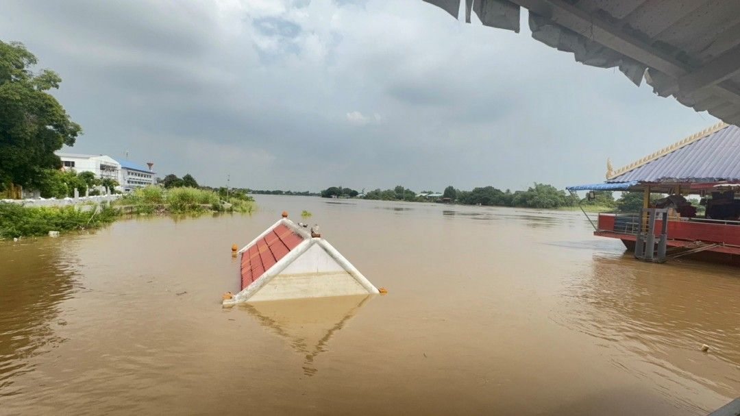 ล่าสุด ที่สถานีวัดระดับน้ำ C7A หน้าศาลากลางจังหวัดอ่างทอง น้ำเจ้าพระยา เลยระยะวิกฤติที่ 8 เมตร มีระดับอยู่ที่ 9.11 เมตร จากระดับตลิ่ง 10 เมตร มีปริมาณน้ำไหลผ่าน 2,455 ลูกบาศก์เมตรต่อวินาที ศูนย์ราชการย่านธุรกิจการค้า ยังคงอยู่ในภาวะเสี่ยง ///-026