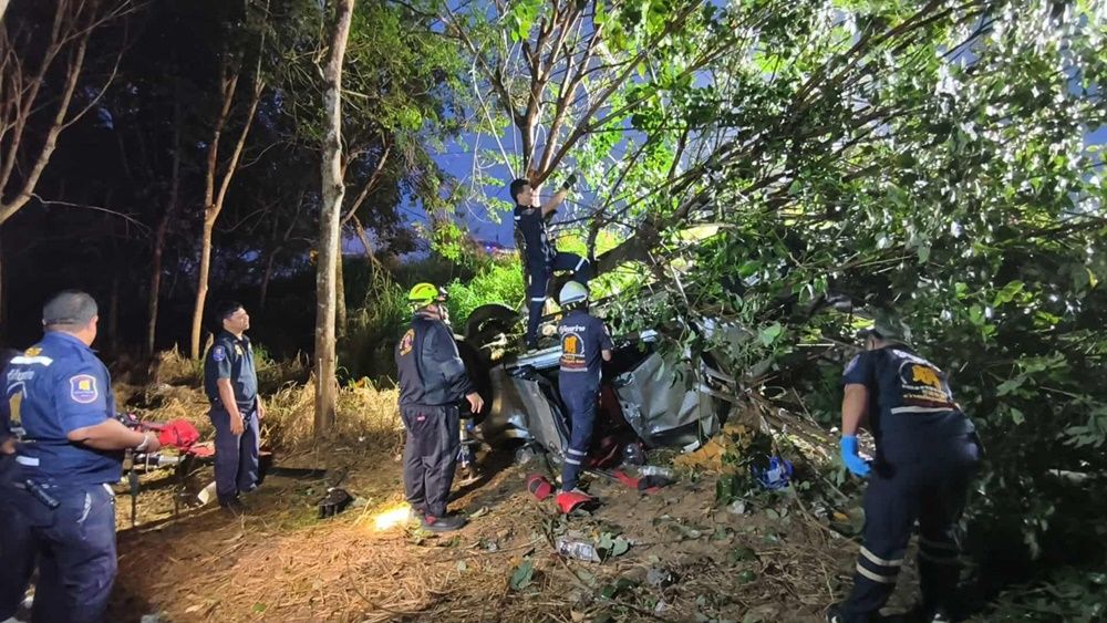 เมื่อเวลา 04.06 น.วันที่ 6 ตุลาคม 2568 ศูนย์วิทยุหน่วยกู้ภัยสว่างบริบูรณ์ธรรมสถานเมืองพัทยา รับแจ้งอุบัติเหตุรถยนต์เสียหลักชนเสาไฟฟ้าและต้นยาง มีผู้บาดเจ็บติดภายในรวม 3 ราย เหตุเกิดบนถนนหลวงแผ่นดินหมายเลข 331 ขาเข้าสัตหีบ ก่อนถึงยูเทิร์นกรมป่าไม้ หมู่ 1 ตำบลเขาไม้แก้ว อำเภอบางละมุง จังหวัดชลบุรี หลังรับแจ้งจึงนำกำลังเจ้าหน้าที่กู้ภัยฯรีบไปตรวจสอบ