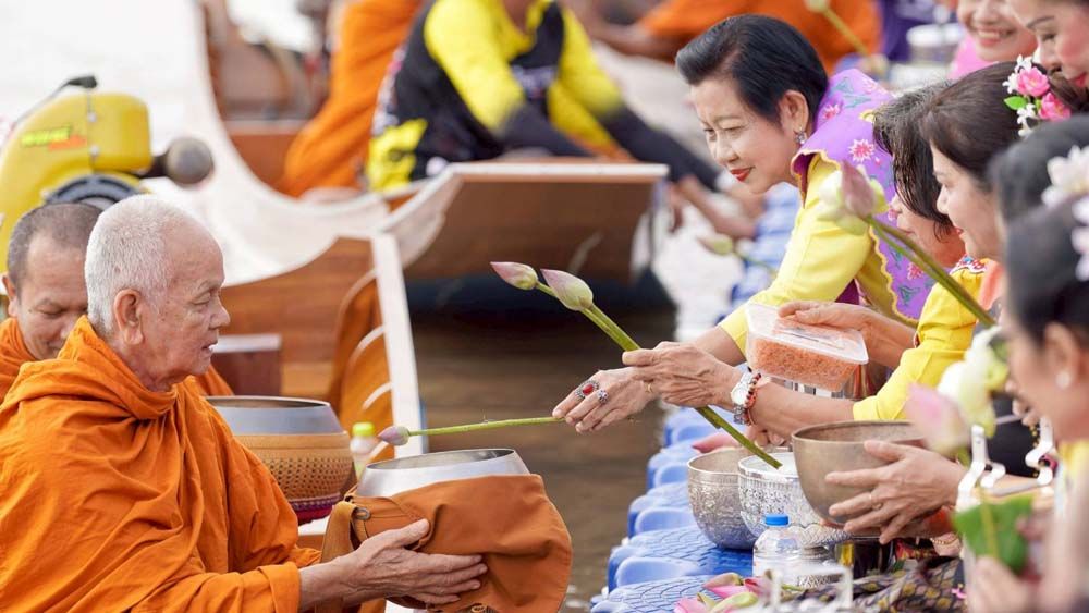 ปทุมธานี รักษาประเพณีเก่าแก่ สภาวัฒนธรรม จับมือ สมาคมการท่องเที่ยวจังหวัดปทุมธานี จัดงานประเพณีตักบาตรพระร้อยร่วมใจถวายบัว