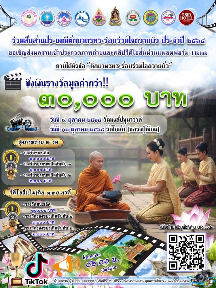 ผู้สื่อข่าวรายงานว่า ปีนี้ จังหวัดปทุมธานี โดยสภาวัฒนธรรมจังหวัด ร่วมกับสมาคมการท่องเที่ยวจังหวัดปทุมธานี ได้จัดงานสืบสานประเพณีตักบาตรพระร้อยร่วมใจถวายบัว ซึ่งเป็นประเพณีเก่าแก่ของชาวมอญหรือชาวไทยรามัญ ที่มีการสืบทอดมายาวนานกว่า 100 ปีและเป็นประเพณีที่อยู่คู่เมืองปทุม แห่งเดียว พร้อมกันนี้ภายในงานยังมีกิจกรรม อิทิ การประกวดภาพถ่ายและคลิปวีดีโอ โดยจะต้องแสดงให้เห็นถึงประเพณีตักบาตรพระร้อยและความร่วมใจถวายดอกบัว ตลอดจนวิถีชีวิตริมแม่น้ำของชาวปทุมธานี ในช่วงเทศกาลออกพรรษา ภายใต้หัวข้อ "ตักบาตรพระร้อยร่วมใจถวายบัว" ชุดภาพถ่ายจะต้องเป็นภาพที่สร้างความประทับใจ แสดงสถานที่สำคัญที่สามารถสื่อจุดเด่นของสถานที่แห่งนั้นได้ โดยกำหนดจัดกิจกรรม จำนวน 2 วัด คือ วัดหงษ์ปทุมาวาส และ วัดโบสถ์ (หลวงปู่เทียน)