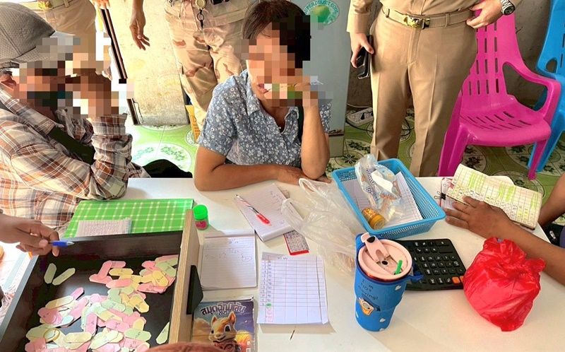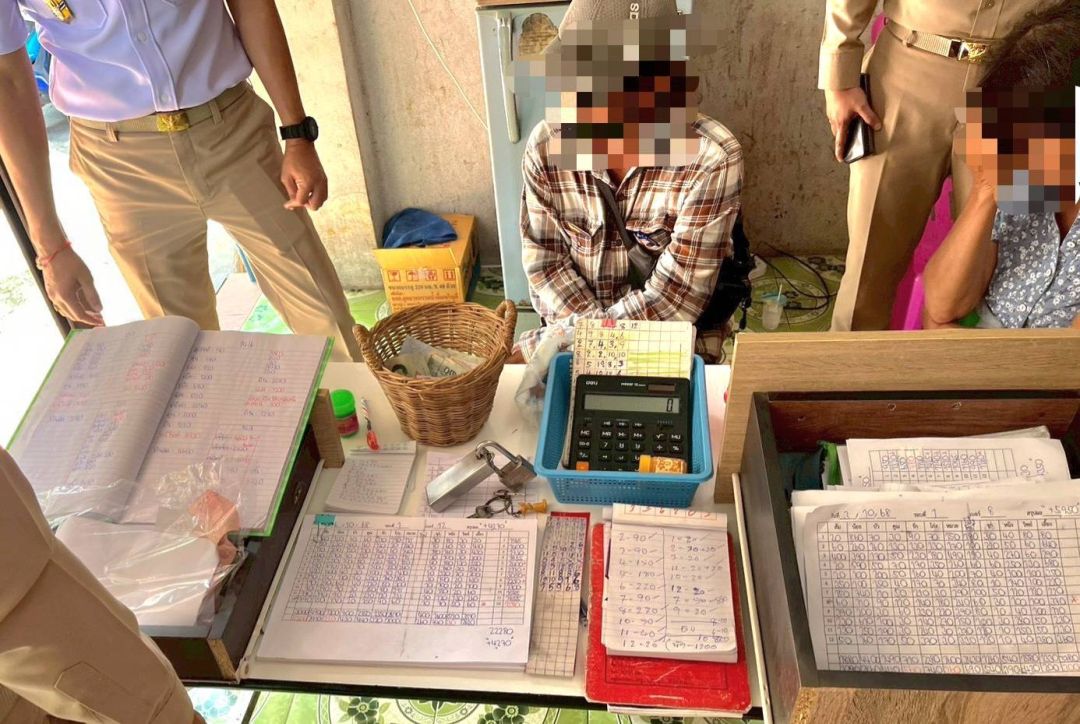 บุกรวบ 'เจ้าแม่หวยยี่กี' พร้อมนักพนัน 6 คนกลางตลาดในกระทุ่มแบน พบของกลางเงินสด และ โพยหวยจำนวนมาก