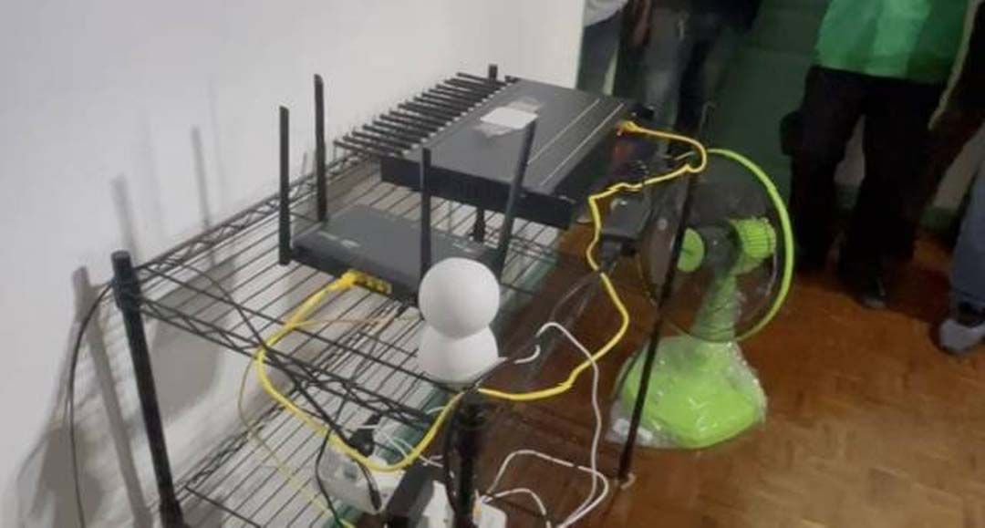 2. ห้องพักคอนโดแห่งหนึ่ง ต.บางโฉลง อ.บางพลี จ.สมุทรปราการ ผลการตรวจค้นพบอุปกรณ์ SIM BOX แบบ 16 ซิม 1 ชุด เราท์เตอร์อินเทอร์เน็ต 1 เครื่อง กล้องวงจรปิด 1 เครื่อง อุปกรณ์สำรองไฟ 1 เครื่องและอุปกรณ์สายแลน 2 สาย