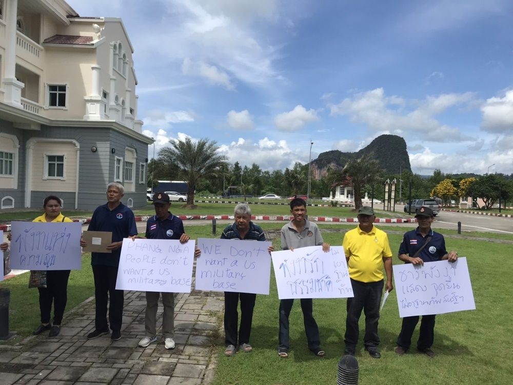 ตัวแทนชาวพังงารวมตัวแสดงจุดยืนคัดค้านกรณีมีกระแสข่าวว่าสหรัฐอเมริกาขอใช้พื้นที่ฐานทัพเรือทับละมุ เพื่อตั้งฐานทัพหรือทำกิจกรรมทางทหาร โดยยื่นหนังสือต่อรองผู้ว่าฯ พังงา พร้อมถือป้ายทั้งไทย-อังกฤษ ชี้การมีฐานทัพต่างชาติจะส่งผลเสียต่อ การท่องเที่ยว วิถีชีวิต สิ่งแวดล้อม และทำให้พื้นที่กลายเป็น เป้าโจมตี ของประเทศคู่ขัดแย้ง