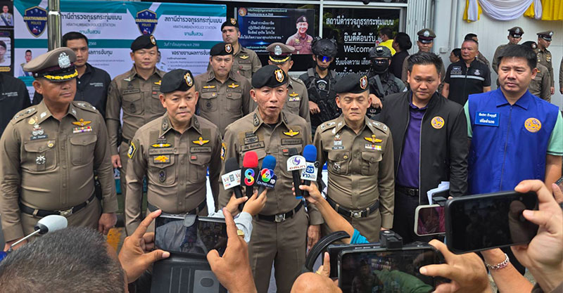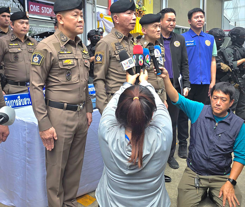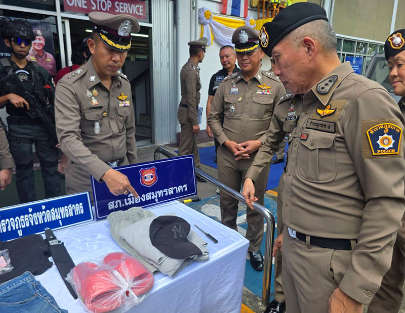 8 ตุลาคม 2568 ที่สถานีตำรวจภูธรกระทุ่มแบน พล.ต.ท.พิสิฐ ตันประเสริฐ ผบช.ภ.7,พล.ต.ต.ชมชวิณ ปุระธนานนท์ รอง ผบช.ภ.7, พล.ต.ต.ธีระเดช อธิภัคกุล ผบก.ภ.จว. สมุทรสาคร,พ.ต.อ.ภคิน ศิวเมธากุล รอง ผบก.ภ รรท.ผกก.สภ.กระทุ่มแบน,พ.ต.อ.พิเชษฐ์พงศ์ แจ้งค้ายคม ผกก.สภ.เมือง,พ.ต.อ.สุรศักดิ์ สิทธิโชคธรรม ผกก.สส.ภ.จว.สมุทรสาคร,พ.ต.ท.ศักดิ์สิทธิ์ ชูบุญเรือง พตท.โสภาส ถนนทิพย์ พตท.สุเชาวน์ เหมือนมิ่ง ปลัดอำเภอกระทุ่มแบน ได้ร่วมกันแถลงข่าว การจับกุมผู้ต้องหาก่อเหตุคดีอาญา 3 เหตุการณ์ในพื้นที่ความรับผิดชอบของ สภ.เมืองสมุทรสาคร 1 ราย และ สภ.กระทุ่มแบน 2 ราย