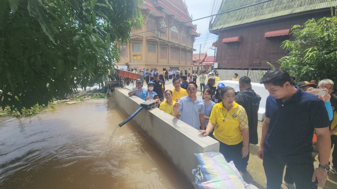 โดยคณะได้ลงพื้นที่ ณ วัดน้ำวน ต.บางเดื่อ และวัดเกาะเกรียง ต.บางคูวัด อ.เมือง ซึ่งเป็นจุดที่น้ำท่วมสูงกว่า 1 เมตรในบางจุด โดยประชาชนมาเข้าแถวรอรับความช่วยเหลือเป็นจำนวนมาก