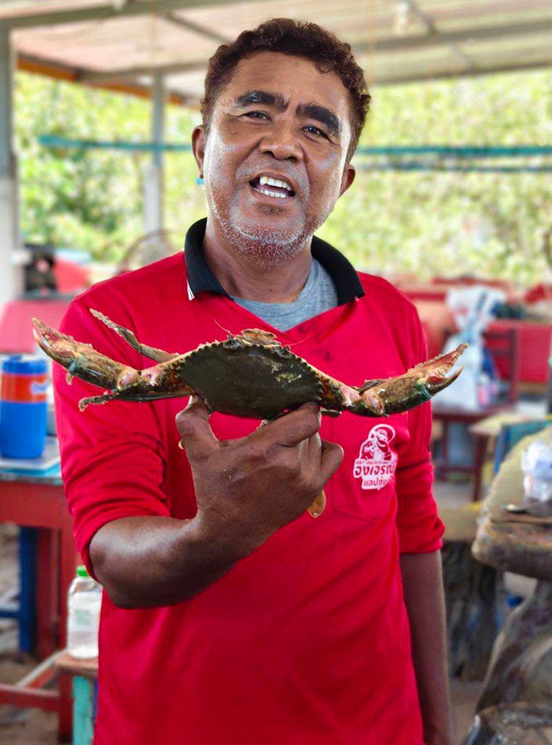 นายณัฏฐชัย นาคเกษม หรือ “พี่โชค” เกษตรกรผู้เลี้ยงปูขาว กลุ่มวิสาหกิจชุมชนในลุ่มน้ำปากพนัง เปิดเผยว่า ศูนย์เรียนรู้เชิงประยุกต์น้ำเค็มเพื่อการผลิตปูขาว บ้านเนินหนองหงส์ ตำบลเกาะเพชร อำเภอหัวไทร จังหวัดนครศรีธรรมราช เป็นแหล่งเรียนรู้และทดลองเลี้ยงปูขาวในบ่อกุ้งเดิมของกลุ่มวิสาหกิจชุมชน โดยได้ดำเนินการศึกษาและทดลองใช้ “ปลาหมอคางดำ” เป็นอาหารเลี้ยงปูขาวมานานกว่า 2 ปี