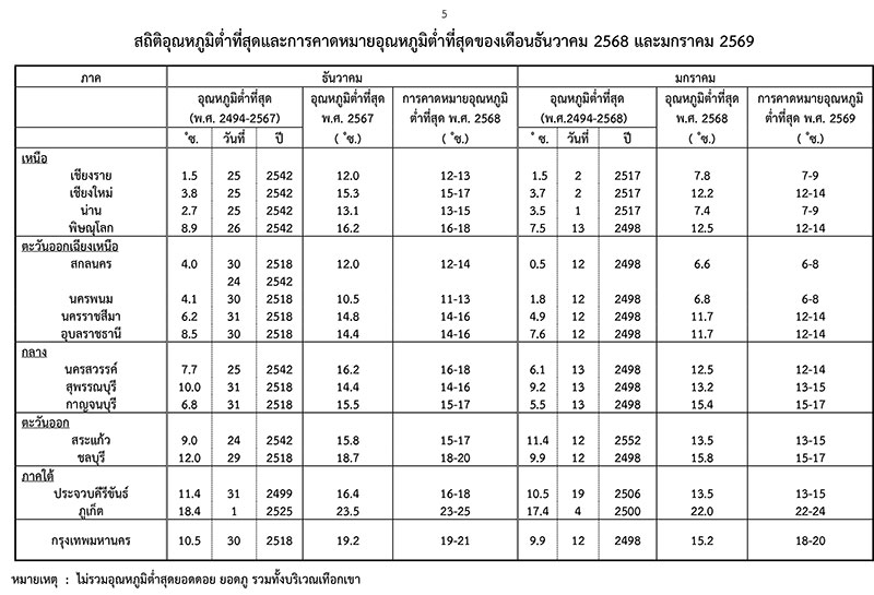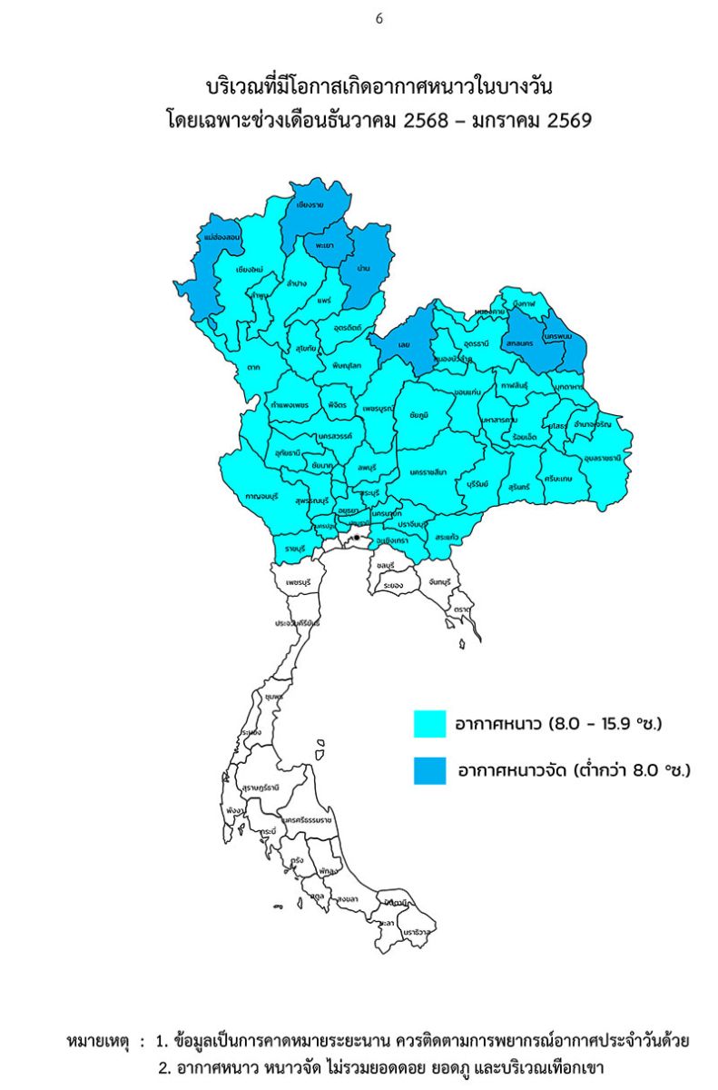 ช่วงเวลาที่มีอากาศหนาวเย็นที่สุด ประมาณกลางเดือนธันวาคม 2568 ถึงต้นเดือนกุมภาพันธ์2569