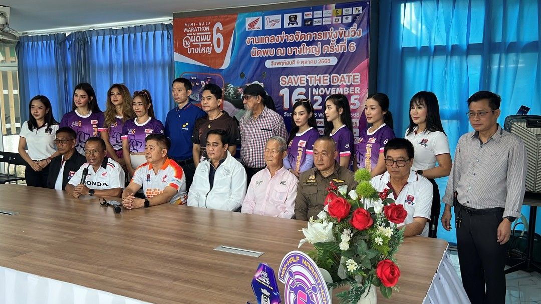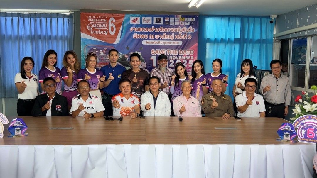 วันที่ 9 ตุลาคม 2568 ณ บริเวณหน้าตลาด BB บางใหญ่ Market ต.เสาธงหิน อ.บางใหญ่ ได้มีการจัดแถลงข่าวจัดการแข่งขันวิ่งการกุศล ‘วิ่งนัดพบ ณ บางใหญ่ ครั้งที่ 6’ ซึ่งนำโดย พ.ต.อ.สิรภพ อนุสิริ ผู้กำกับการสถานีตำรวจภูธรบางใหญ่ และ นายสุวพันธุ์ โคตพงค์ ประธานคณะกรรมการตรวจสอบและติดตามการบริหารงานตำรวจ (กต.ตร.) สภ.บางใหญ่ นอกจากนี้ยังได้รับเกียรติจากศิลปินตลกชื่อดัง นายศรสุทธา กลั่นมาลี หรือ ถั่วแระ เชิญยิ้ม และ เชษฐ์ เชิญยิ้ม มาร่วมแถลงข่าวและเชิญชวนประชาชนร่วมกิจกรรม