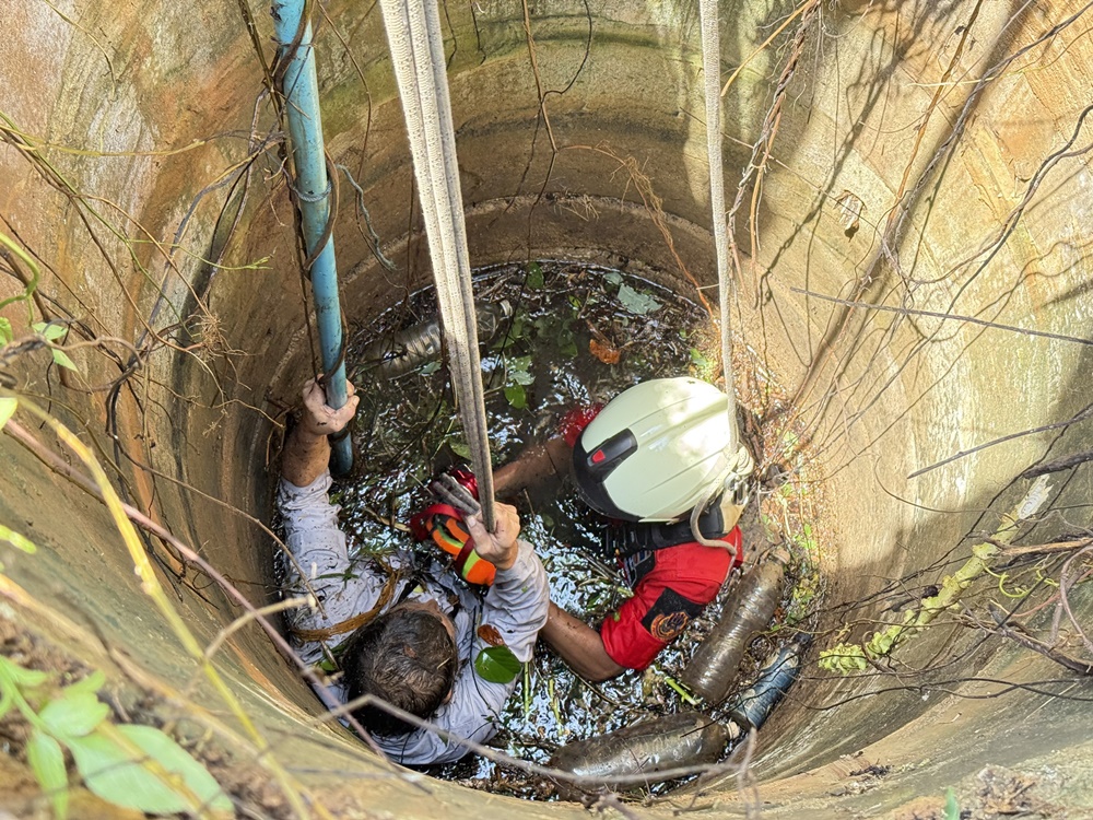 ที่เกิดเหตุพบชายชาวต่างชาติลอยคออยู่อย่างอ่อนแรงในบ่อน้ำ พร้อมตะโกนขอความช่วยเหลือ เจ้าหน้าที่จึงรีบส่งเชือกลงไปให้ผูกกับร่างกาย ก่อนช่วยกันดึงขึ้นมา ใช้เวลาประมาณ 15 นาทีจึงสามารถนำขึ้นมาได้อย่างปลอดภัย ทราบชื่อต่อมาคือ MR. Roland Lorenz อายุ 63 ปี สัญชาติเยอรมนี โดยไม่ได้รับบาดเจ็บ มีลูกชายคอยยืนลุ้นและให้กำลังใจอยู่ใกล้ ๆ