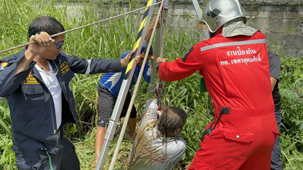 เกือบดับ! ฝรั่งเยอรมนีวัย 63 ตัดหญ้าพลัดตกบ่อน้ำลึก 20 เมตร ลอยคออยู่นาน 40 นาที เพื่อนบ้านได้ยินเสียงร้องรีบแจ้งกู้ภัยช่วยทัน