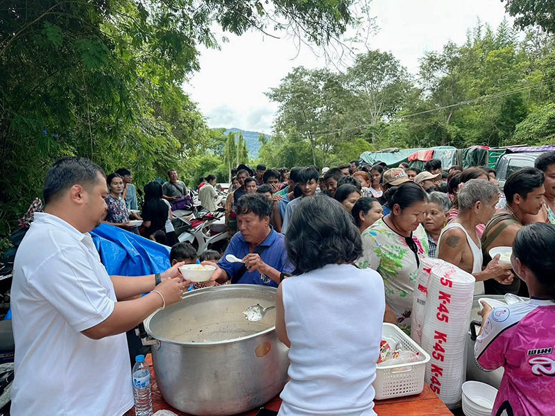 ขณะเดียวกัน ชาวบ้านนำโดยผู้ใหญ่บ้านบ้านพุน้ำร้อน หมู่ 12 ต.บ้านเก่า และหน่วยงานต่างๆที่เกี่ยวข้องได้พร้อมใจกันประกอบอาหารเพื่อให้ผู้อพยพทุกคนได้กินจนอิ่มท้องอย่างสบายใจ เพราะที่ผ่านมาชาวบ้านในพื้นที่ต่างคุ้นหน้าคุ้นตาและเคยไปมาหาสู่รวมถึงซื้อขายสินค้าในระดับท้องถิ่นกันอยู่แล้ว ส่วนประเด็นที่สังคมออนไลน์แสดงความคิดเห็นด้วยความกังวลว่า การอพเข้ามาในครั้งนี้อาจจะไปซ้ำรอยชายแดนด้านพื้นที่บ้านหนองจาน จังหวัดสระแก้ว นั้น ประเด็นนี้ไม่ต้องกังวลเพราะสภาพพื้นที่ชายแดนนั้นแตกต่างกันอย่างสิ้นเชิง ที่สำคัญชาวบ้านที่อพยพมานั้น ไม่ได้รุกล้ำเข้ามาอาศัยในเขตพื้นที่ของประเทศไทยแต่อย่างใด โดยหน่วยงานด้านความมั่นคงทุกหน่วยร่วมกันเฝ้าระวังอย่างใกล้ชิด