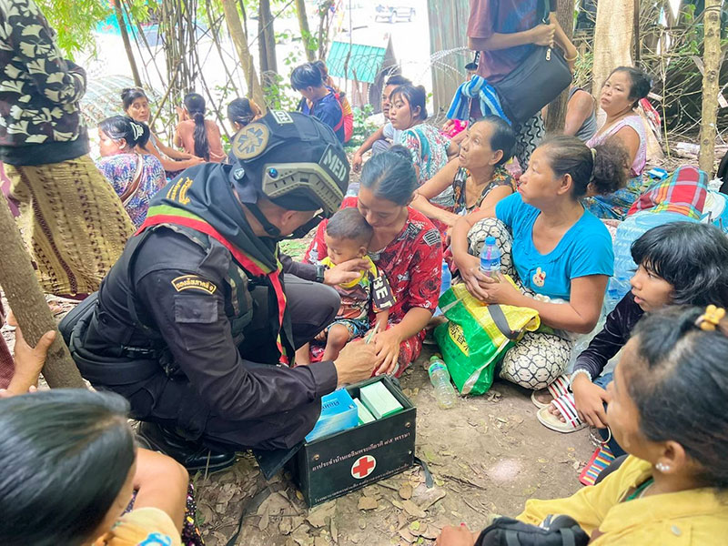 และนอกจากนี้ กองร้อยทหารพรานที่ 1402 กรมทหารพรานที่ 14 ได้จัดเจ้าหน้าที่เสนารักษ์นำอุปกรณ์ทางการแพทย์และยารักษาโรค เข้าให้ความช่วยเหลือชาวบ้านที่หนีภัยจากการสู้รบ มีทั้งการตรวจสุขภาพให้แก่เด็กและคนชรา รวมถึงทำบาดแผลให้กับผู้ที่ได้รับบาดเจ็บอีกด้วย จึงถือว่าเป็นการช่วยเหลือด้านมนุษยธรรม ที่ไร้พรมแดน