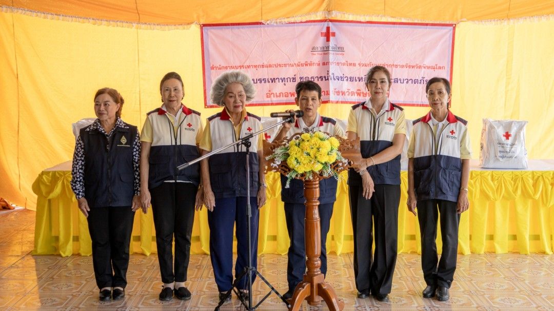 การลงพื้นที่ในครั้งนี้มี นางนาตยา บารมี รองนายกเหล่ากาชาดจังหวัดพิษณุโลก พร้อมด้วยผู้แทนจาก สถานีกาชาดเทพรัตน์ (สถานีกาชาดที่ 13 จังหวัดตาก) นายอำเภอพรหมพิราม หัวหน้าสำนักงาน ปภ.จังหวัดพิษณุโลก สมาชิกเหล่ากาชาด และสมาชิกแม่บ้านมหาดไทยจังหวัดพิษณุโลก ร่วมกันมอบสิ่งของและให้กำลังใจแก่ผู้ประสบภัย