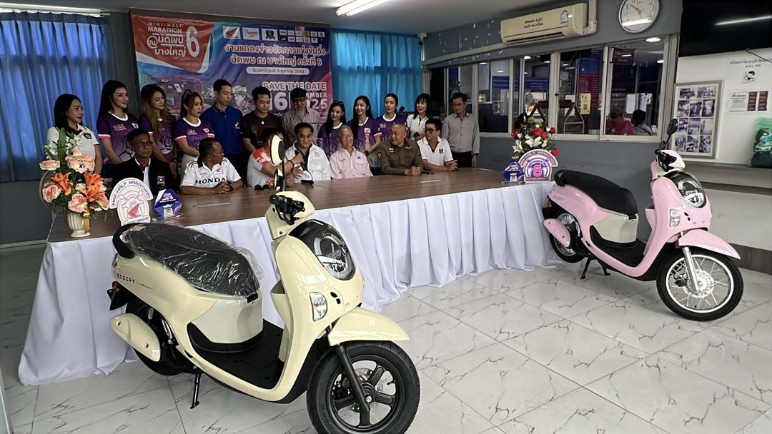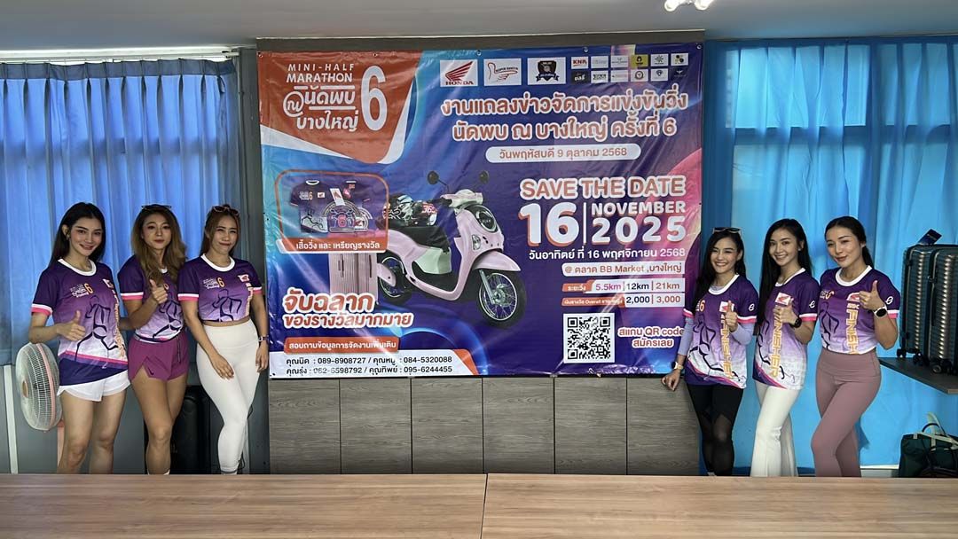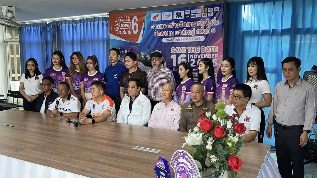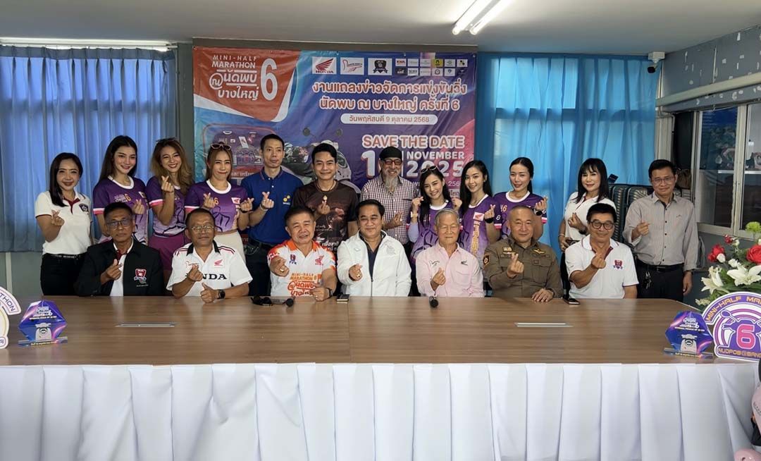 9 ตุลาคม 2568 พ.ต.อ.สิรภพ อนุสิริ ผกก.สภ.บางใหญ่ จ.นนทบุรี นายสุวพันธุ์ โคตพงค์ ประธานคณะกรรมการตรวจสอบและติดตามการบริหารงานตำรวจ (กต.ตร.) สภ.บางใหญ่ นายศรสุทธา กลั่นมาลี หรือถั่วแระ เชิญยิ้ม , เชษฐ์ เชิญยิ้ม ดาราตลกชื่อดัง ได้ร่วมกันแถลงข่าวจัดการแข่งขันวิ่งนัดพบ ณ บางใหญ่ ครั้งที่6 จัดขึ้นที่บริเวณหน้าตลาด BB บางใหญ่ Market ต.เสาธงหิน อ.บางใหญ่