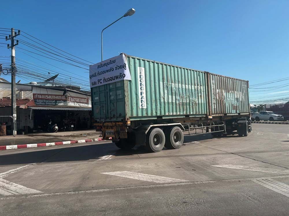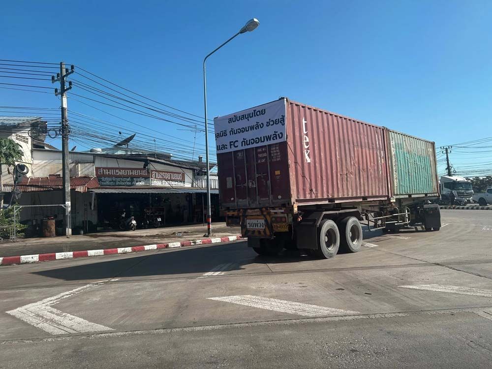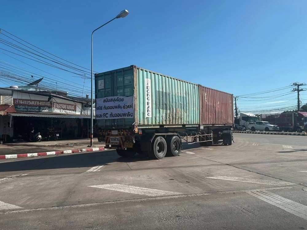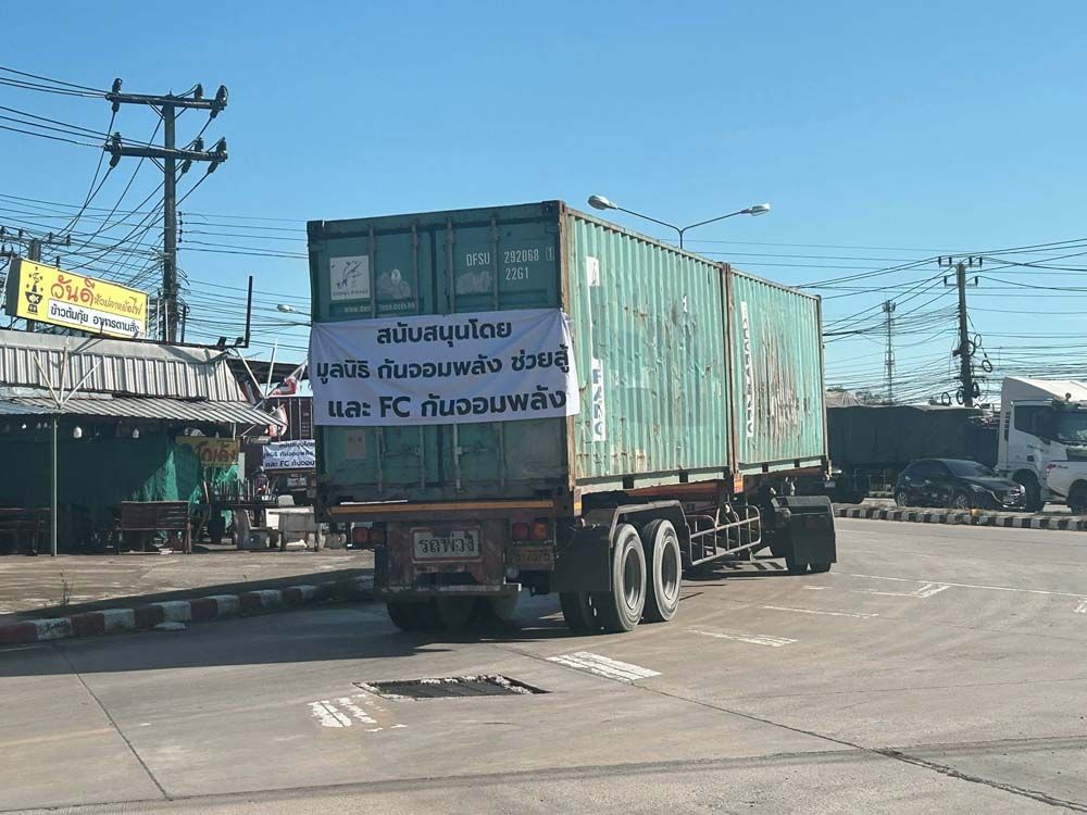 ล่าสุด เมื่อเวลา 09.00 น. มูลนิธิกันจอมพลัง ช่วยสู้ นำคอนเทนเนอร์ประมาณ 60 ตู้ มุ่งหน้าชายแดนบ้านหนองจาน จ.สระแก้วแล้ว