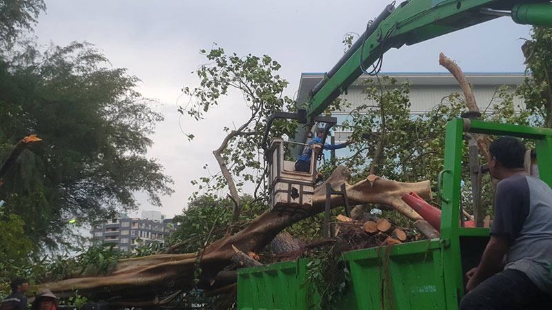 เจ้าหน้าที่เทศบาลนครระยองต้องเร่งนำเลื่อยยนต์เข้าตัดกิ่งไม้และเคลียร์พื้นที่ เพื่อเปิดทางสัญจรให้ประชาชนสามารถใช้ถนนได้ตามปกติ พร้อมกระจายกำลังช่วยเหลือพื้นที่อื่นที่ได้รับผลกระทบจากพายุ