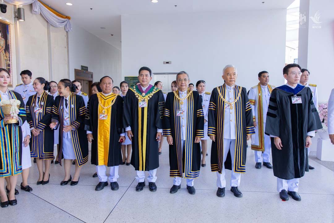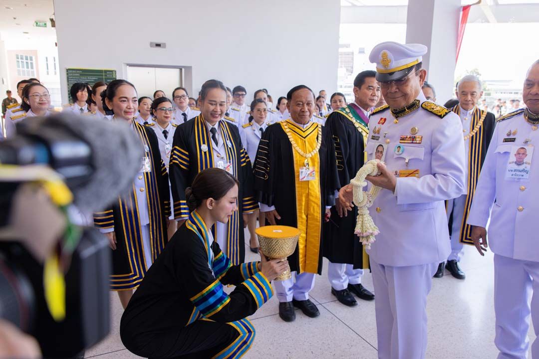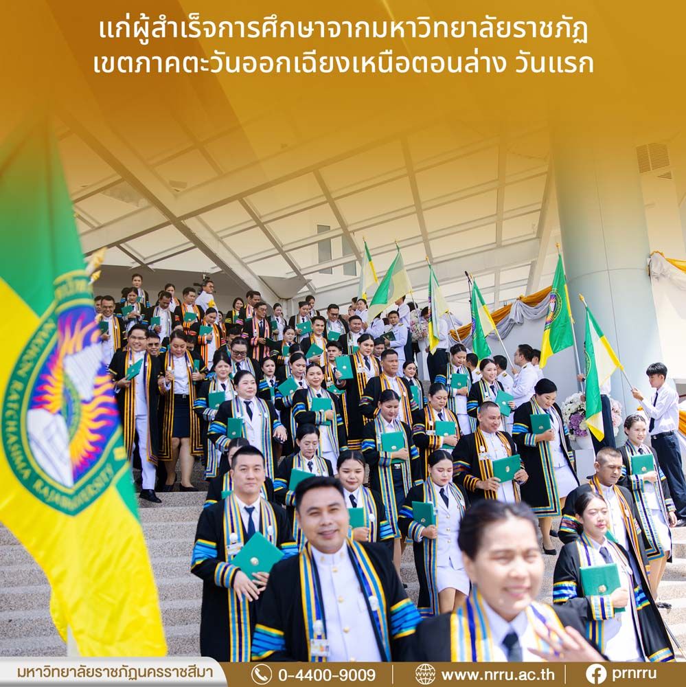 ในวันนี้ (10 ตุลาคม 2568) เป็นการพระราชทานปริญญาบัตรให้กับผู้สำเร็จการศึกษาจาก มหาวิทยาลัยราชภัฏนครราชสีมา มหาวิทยาลัยราชภัฏบุรีรัมย์ และมหาวิทยาลัยราชภัฏชัยภูมิ ในการนี้ นายสุวัจน์ ลิปตพัลลภ นายกสภามหาวิทยาลัยราชภัฏนครราชสีมา ได้กล่าวรายงานผลการดำเนินงานมหาวิทยาลัยราชภัฏนครราชสีมา ที่ได้น้อมนำพระบรมราโชบายด้านการศึกษา เพื่อสร้างคุณลักษณะ 4 ประการให้กับผู้เรียน ด้วยสำนึกในพระมหากรุณาธิคุณของพระบาทสมเด็จพระเจ้าอยู่หัว จึงได้น้อมนำแนวทางการดำเนินงาน สู่การปฏิบัติและมีการพัฒนาอย่างต่อเนื่อง โดยในปีงบประมาณ พ.ศ.2568 ได้ขับเคลื่อนงานพัฒนาท้องถิ่นครอบคลุมทั้งมิติเศรษฐกิจ สังคม การศึกษา และสิ่งแวดล้อม มีการสร้างชุมชนต้นแบบด้านการท่องเที่ยว การดูแลสุขภาพ และการบริหารจัดการทรัพยากรธรรมชาติและสิ่งแวดล้อม รวมถึงการพัฒนาต่อยอดอัตลักษณ์ชุมชนสู่ Soft Power