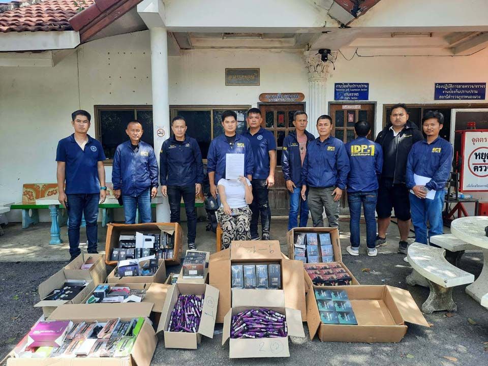 เจ้าหน้าที่จึงเข้าตรวจค้นขยายผลพบ บุหรี่ไฟฟ้า น้ำยาบุหรี่ไฟฟ้า รวม 1,466 ชิ้น ราคาประมาณ 488,860 บาท จึงได้ทำการตรวจยึดไว้ และจับกุมน.ส.วรดา พร้อมของกลางส่งพนักงานสอบสวน สภ.หนองม่วง ดำเนินคดีตามกฎหมาย