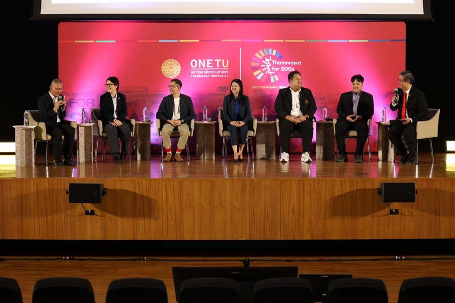 “จากการหารือร่วมกับสภาอุตสาหกรรมแห่งประเทศไทยพบว่ามีอุตสาหกรรมขนาดใหญ่ที่ได้ระบุมาอย่างชัดเจนแล้วว่า หากประเทศไทยยังไม่มีแหล่งพลังงานทดแทน 100% ในอนาคตก็จำเป็นจะต้องย้ายฐานการผลิตไปยังประเทศอื่นแทน เชื่อว่าจะมีแบบนี้อีกไม่น้อยและจะกระทบต่อเศรษฐกิจ การจ้างงาน และมิติทางสังคมอื่นๆ อีกมาก นี่คือเหตุผลที่เราต้องจริงจังกับการขับเคลื่อน SDGs ซึ่งในธรรมศาสตร์มีการพูดคุยเรื่องนี้กันอย่างจริงจังว่าในสถาบันการศึกษาจะสนับสนุนส่วนใดได้บ้าง” ผู้ช่วยอธิการบดีฝ่ายพัฒนาคุณภาพและความยั่งยืน กล่าว