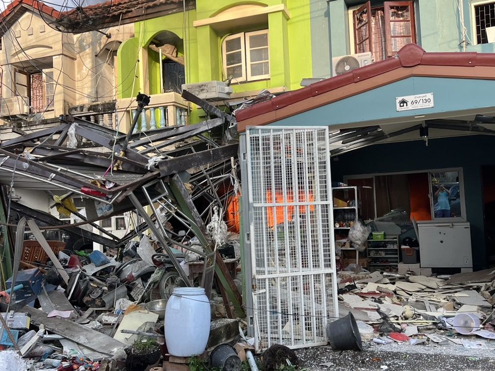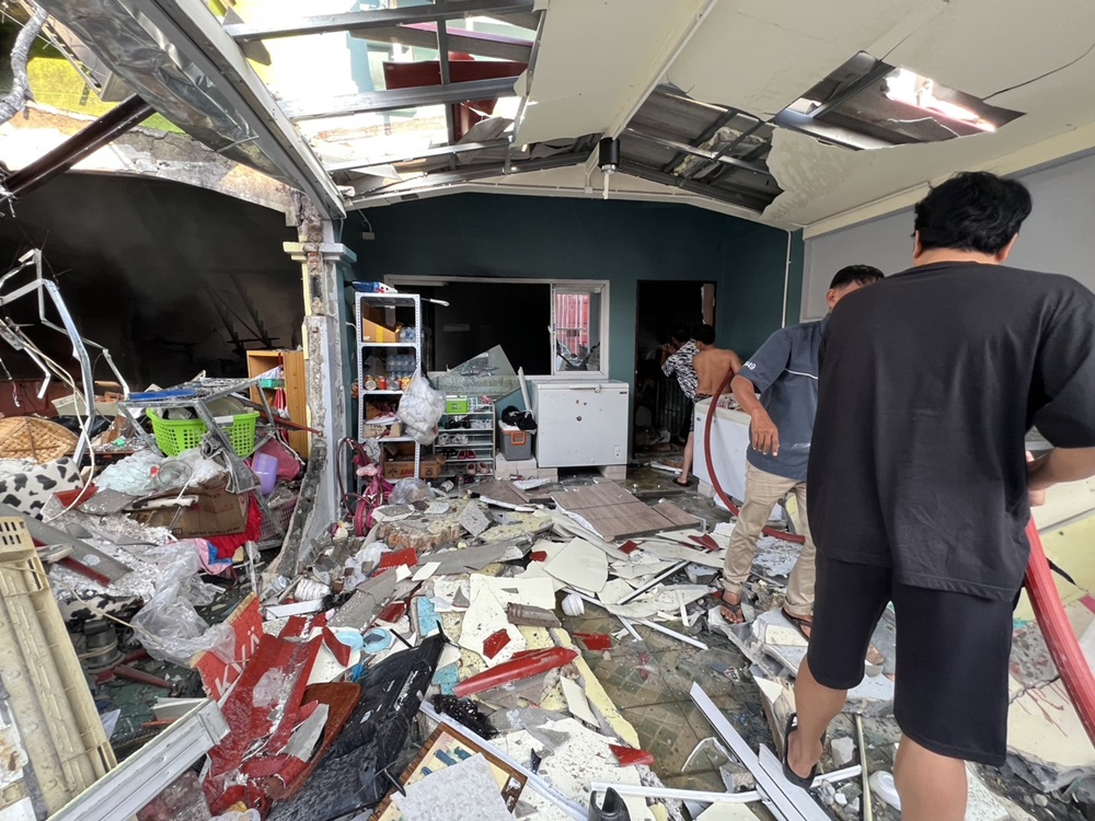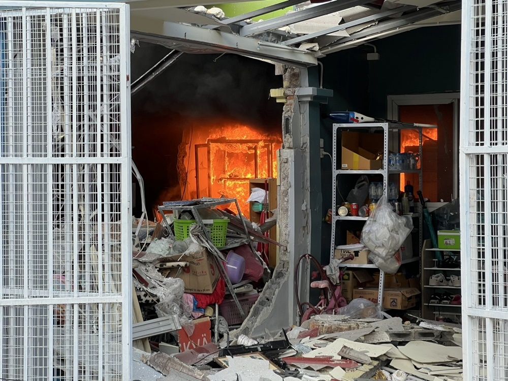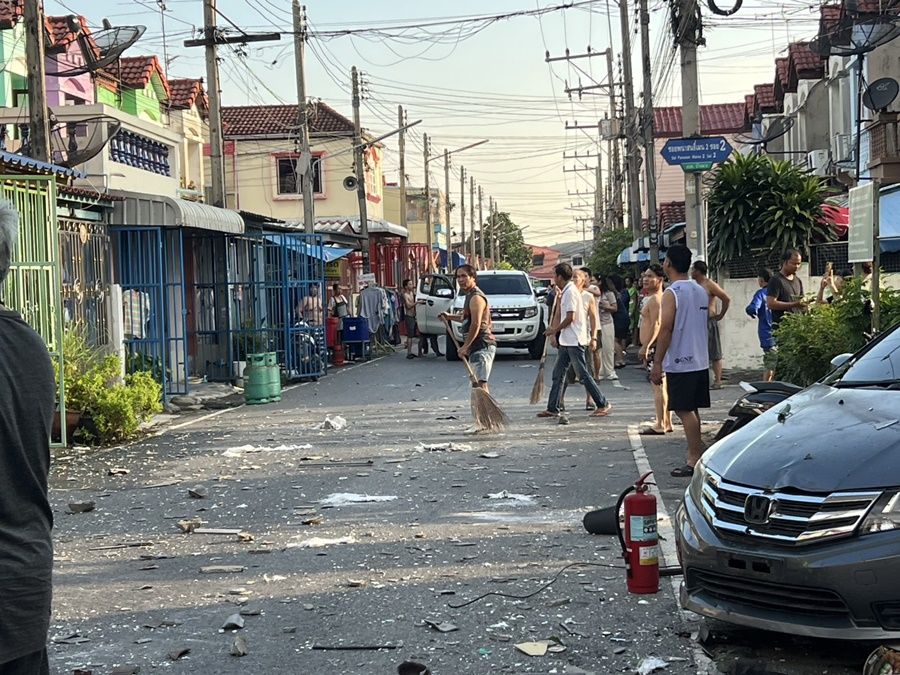 ที่เกิดเหตุเป็นทาวน์เฮาส์ปลูกติดกันหลายหลัง พบว่า แสงเพลิงโหมไหม้อย่างรุนแรง บริเวณบ้านต้นเพลิงซึ่งเปิดเป็น ร้านเสริมสวย (ป้าวรรณณา) และลุกลามไปยังบ้านข้างเคียง ทำให้บ้านเสียหายทั้งหมดรวม 3 หลังคาเรือน โดยเฉพาะโครงสร้างชั้นสองและหลังคาบ้านทั้งสามหลัง ถูกแรงอัดจากการระเบิด จนพังเสียหายอย่างหนัก