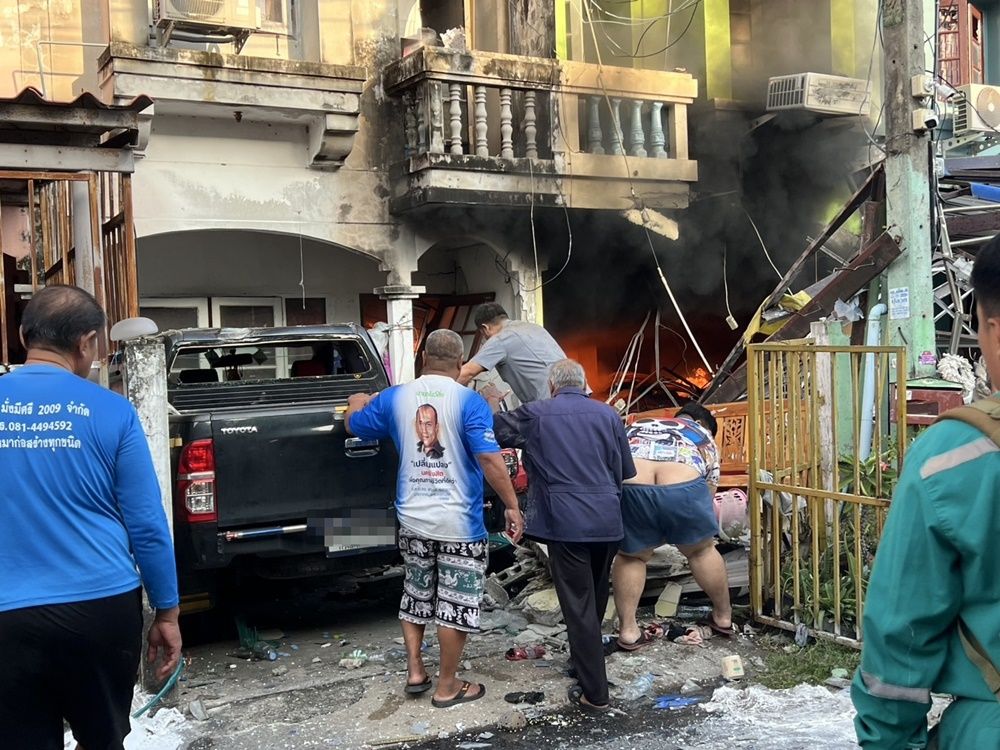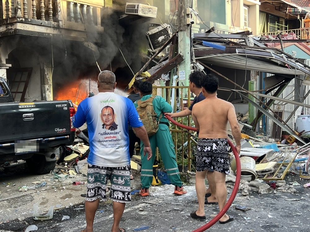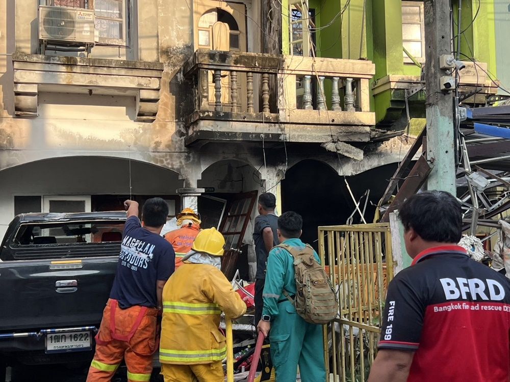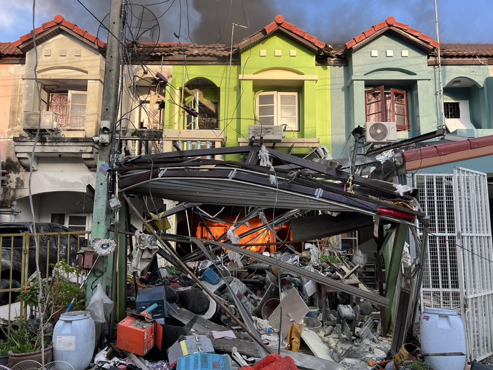 แก๊สระเบิดสนั่นทาวน์เฮาส์ 3 หลังพังยับเพลิงคลอกเจ้าของร้านเสริมสวยเสียชีวิต เจ็บอีก 7 ราย