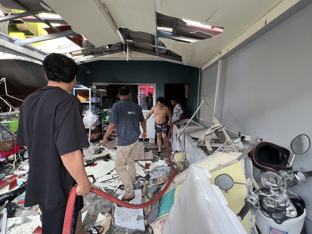 ใกล้จุดเกิดเหตุยังพบ รถกระบะโตโยต้า 1 คัน และ รถจักรยานยนต์ 2 คัน ได้รับความเสียหายจากซากหักพังและเศษปูนที่ถล่มลงมาทับ เจ้าหน้าที่ดับเพลิงใช้เวลาไม่นานก็สามารถ ควบคุมเพลิงไว้ได้
