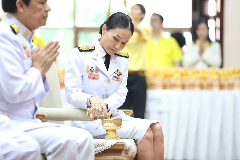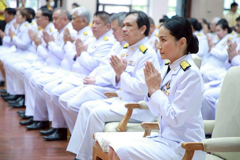 โดย ศ.ดร.นฤมล ได้จุดเครื่องทองน้อยหน้าพระบรมฉายาลักษณ์พระบาทสมเด็จพระบรมชนกาธิเบศร มหาภูมิพลอดุลยเดชมหาราช บรมนาถบพิตร จากนั้น นำคณะผู้บริหาร ข้าราชการ ศธ. ประกอบพิธีเจริญพระพุทธมนต์ ถวายจตุปัจจัยไทยธรรม พระสงฆ์ จำนวน 10 รูป ถวายความเคารพพระบรมฉายาลักษณ์ฯ และทำบุญตักบาตรพระสงฆ์และสามเณร จำนวน 89 รูป ตามลำดับ