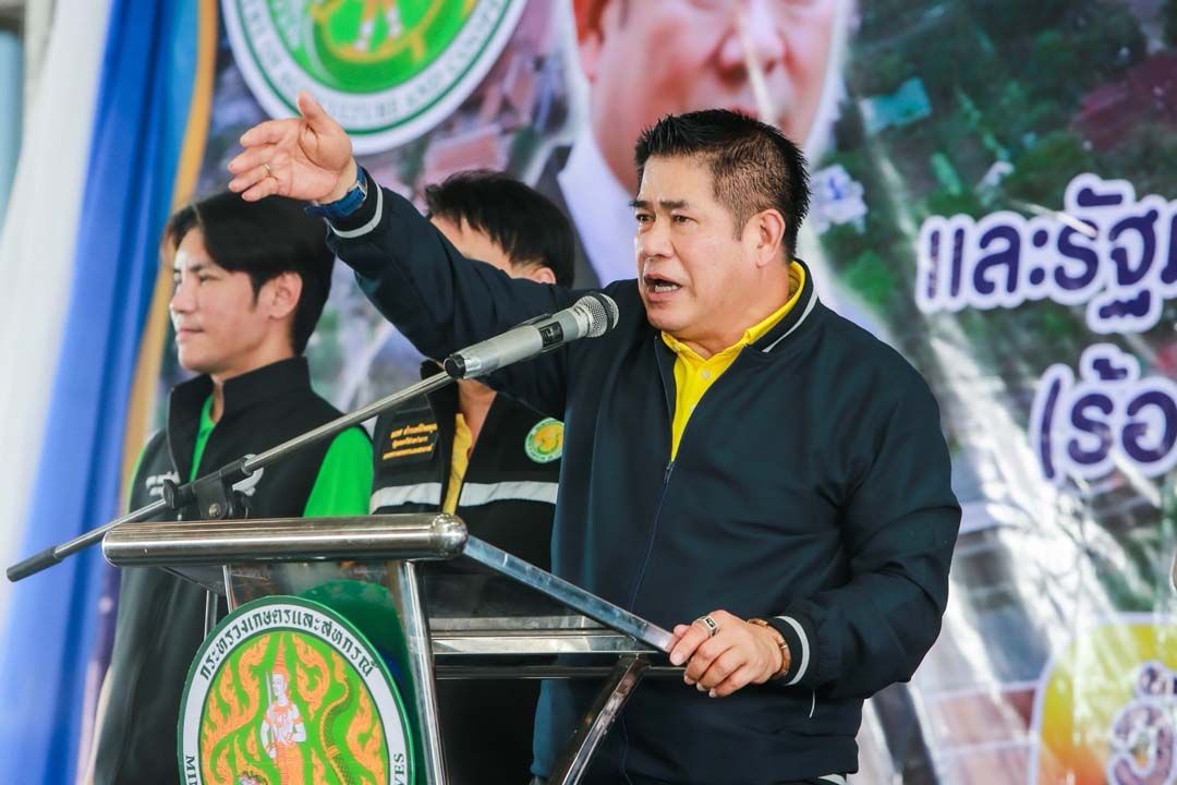 ส่วนการแก้ไขปัญหาปลาหมอคางดำ ร.อ.ธรรมนัส กล่าวว่า คนที่จุดประเด็นเรื่องนี้ก็คือตัวผมเอง เพราะมันทำให้พี่น้องชาวประมงเดือดร้อนมันขยายพันธุ์ไว และตายยาก เราก็หามาตรการจัดการอย่างต่อเนื่อง แม้จะจัดการได้ไม่ร้อยเปอร์เซ็นต์ แต่เราจะไม่ยอมแพ้ ต้องปราบให้ได้ ต้องทำให้ต่อเนื่อง ไม่ว่าจะใช้เวลากี่วันกี่ปี จากนี้เราจะนำปลาหมอคางดำมาหมักเป็นปุ๋ย เพราะให้ธาตุอาหารแก่พืช ทั้งไนโตรเจน แคลเซียม และโพแทสเซียม ช่วยให้ต้นไม้เติบโตดีขึ้น โดยพรุ่งนี้ตนจะมีการประชุมประธานสหกรณ์ทั่วประเทศไทยที่เมืองทองธานี เพื่อวางแนวทางลดต้นทุนการผลิต ทั้งพืชไร่ พืชสวน และสหกรณ์จะต้องเป็นแหล่งจําหน่าย ปัจจัยการผลิต และจัดหาช่องทางจำหน่าย รวมถึงส่งเสริมการเป็นตลาดและสถาบันรองรับสินค้าการเกษตรที่ผลิตจากชุมชน เช่น ผลิตภัณฑ์แปรรูปจากปลาหมอคางดำ โดยในช่วงที่ตนหายไปหนึ่งปีการปราบปรามอาจจะไม่เข้มข้น อย่างที่เคยทํา แต่วันนี้กลับมาประกาศสงครามกับปลาหมอคางดำอย่างเอาจริงเอาจังอีกรอบหนึ่ง