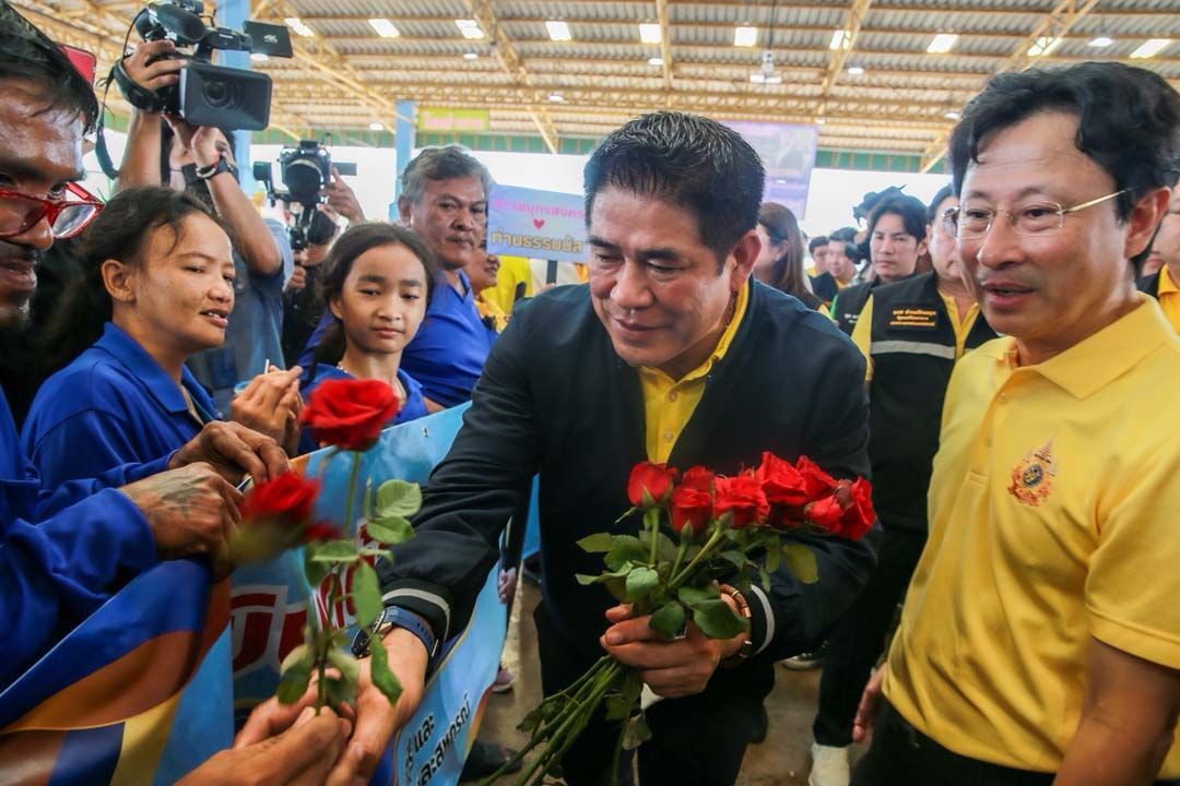 "ขอยืนยันกับพี่น้องชาวสมุทรสงครามว่า สิ่งที่ผมเคยให้นโยบายไว้จะเดินหน้าต่อให้ถึงที่สุด ตลอดช่วงที่ผมดำรงตำแหน่งรัฐมนตรีว่าการกระทรวงเกษตรฯ ได้ผลักดันการแก้ไขกฎหมายและกฎระเบียบที่เกี่ยวข้องกับข้อกำหนดของ ไอยูยู (IUU Fishing) ซึ่งสร้างผลกระทบต่อชาวประมงไทย แลพดำเนินการแก้กฎหมายไปแล้ว 29 ฉบับ และตอนนี้ พ.ร.บ.หลัก ก็ผ่านกระบวนการพิจารณาเรียบร้อยแล้ว และระหว่างรอประกาศใช้กฎหมายฉบับใหม่ ผมได้มอบหมายให้เร่งจัดทำกฎหมายลูกรองรับ ให้พร้อมบังคับใช้โดยเร็ว" ร.อ.ธรรมนัส กล่าว