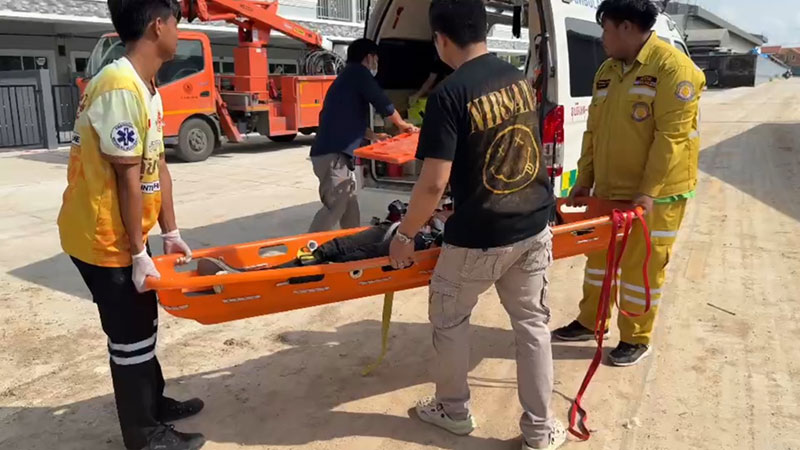 กู้ภัยปลวกแดงทำงานแข่งกับเวลา เร่งช่วยเหลือคนงานก่อสร้างอายุ 38 ปี ถูกไฟช็อตหมดสติบนหลังคา สุดท้ายช่วยได้สำเร็จ นำส่งรักษายังโรงพยาบาล