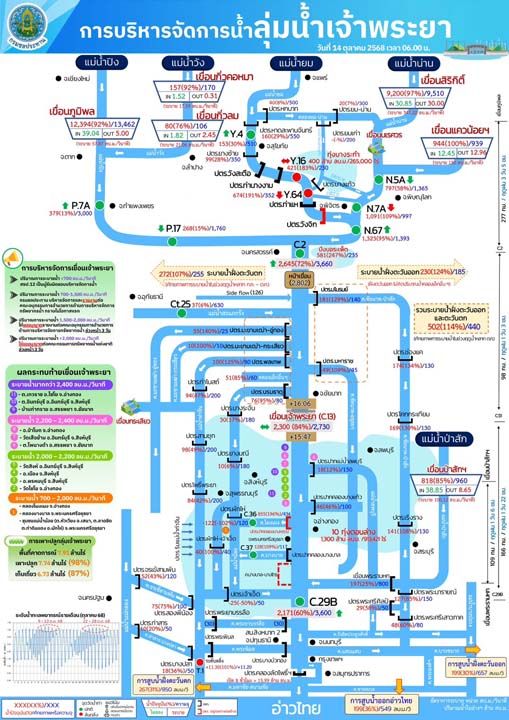 ที่ประชุมได้ร่วมพิจารณาปรับแผนบริหารจัดการน้ำในเขื่อนหลัก เพื่อให้การระบายน้ำเป็นไปอย่างสมดุลกับปริมาณฝนและน้ำท่าในพื้นที่ โดยเห็นชอบให้ปรับลดการระบายน้ำเขื่อนสิริกิติ์ จ.อุตรดิตถ์ แบบขั้นบันได จากเดิม 30 ล้าน ลบ.ม./วัน เหลือ 25 และ 20 ล้าน ลบ.ม./วัน ตามสถานการณ์น้ำในพื้นที่เพื่อบรรเทาผลกระทบด้านท้ายน้ำ