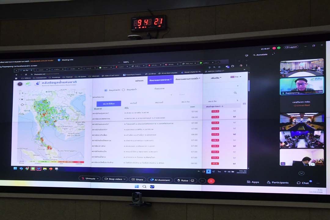 14 ตุลาคม 2568 นายเดช เล็กวิชัย รองอธิบดีกรมชลประทาน พร้อมด้วย ดร.ธเนศร์ สมบูรณ์ ผู้อำนวยการสำนักบริหารจัดการน้ำและอุทกวิทยา นายธวัชชัย ไตรวารี ผู้อำนวยการส่วนประมวลวิเคราะห์สถานการณ์น้ำ และผู้เกี่ยวข้อง เข้าร่วมประชุมติดตามสถานการณ์น้ำ โดยมี นายดนุชา พิชยนันท์ เลขาธิการสำนักงานทรัพยากรน้ำแห่งชาติ (สทนช.) เป็นประธานการประชุมผ่านระบบ VDO Conference ร่วมกับผู้แทนหน่วยงานที่เกี่ยวข้อง