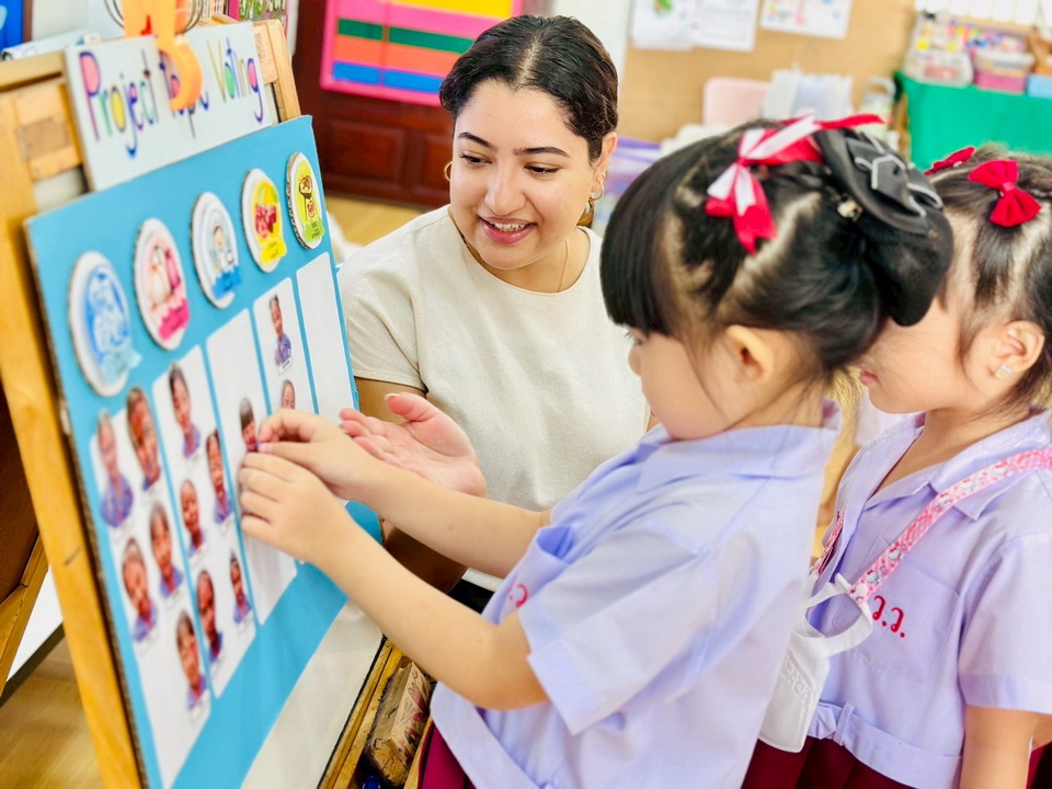 “เราให้ความสำคัญกับการเชื่อมต่อระหว่างบ้านและโรงเรียน โดยมีการรายงานผลสัมฤทธิ์ทางการเรียนอย่างต่อเนื่อง และเปิดโอกาสให้ผู้ปกครองพบครูผู้สอนชาวต่างชาติภาคเรียนละ 1 ครั้ง รวมถึงการประชุมผู้ปกครองประจำปี นอกจากนี้ยังมีไลน์กลุ่มของห้องเรียนที่ช่วยให้ครูและผู้ปกครองติดต่อสื่อสารได้โดยตรง” ดร.สุภลักษณ์ กล่าวและว่า หลายครอบครัวกังวลว่าลูกจะไม่กล้าพูดภาษาอังกฤษ ที่นี่เราออกแบบกิจกรรมเพื่อช่วยเสริม เช่น English Camp, English Week และกิจกรรม Crosswords รวมถึงการสื่อสารกับครูต่างชาติในชีวิตประจำวัน ทำให้เด็กได้ซึมซับภาษาอย่างเป็นธรรมชาติ และค่อยๆ กล้าใช้ภาษาอังกฤษมากขึ้น