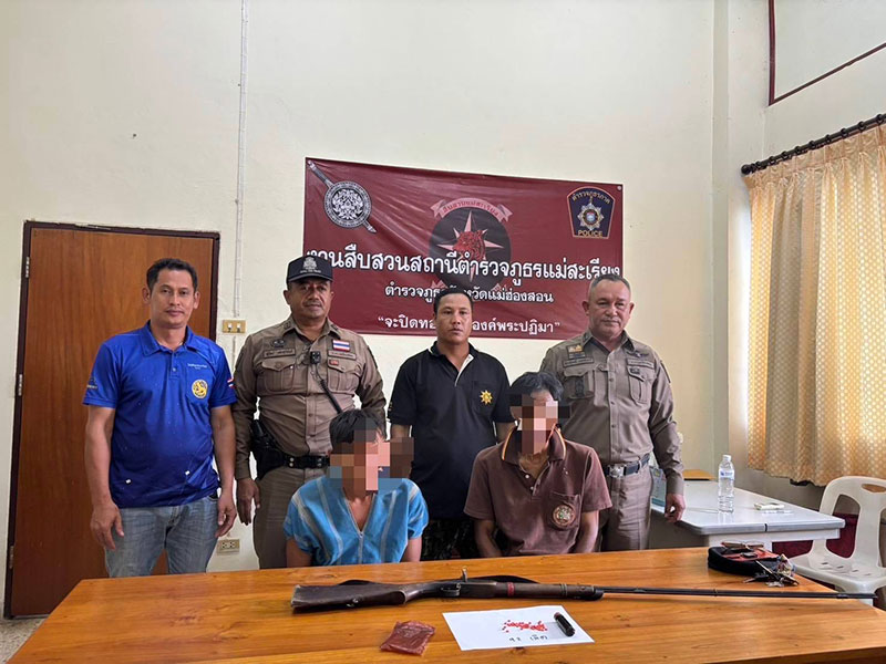 15 ตุลาคม 2568 เมื่อวันที่ 14 ตุลาคม 2568 เวลาประมาณ 13.30 น. จากการอำนวยการโดย พ.ต.อ.รัฐวิชญ์ วศินพงศ์ธนัช ผกก.สภ.แม่สะเรียง ,พ.ต.ท.อลงกรณ์ พรหมตา รอง ผกก.สส.ฯ ,พ.ต.ท.จักษ์พัฒน์ ดอกจันทร์ รอง ผกก.ป.ฯ,พ.ต.ท.พิเชษฐ์ ถาทวี สวป.ฯ,พ.ต.ท.บัญชา ชำนาญ สว.สส. รายนามเจ้าหน้าที่ชุดจับกุม นำโดย พ.ต.ท.จักษ์พัฒน์ ดอกจันทร์ รอง ผกก.ป.ฯ,ร.ต.ท.สุวิทย์ แสงสุริยันต์,ด.ต.เจริญผล แสพลกรัง,ด.ต.จักรพันธ์ รัตนา ,ด.ต.เกิดพงษ์ มาสัก ร่วมกับกำนันต.แม่เหาะ,ผรส. ได้เข้าทำการจับกุม นายคำนวล ไม่มีชื่อสกุล อายุ 36 ปี และ นายซูติ ไม่มีชื่อสกุล อายุ 57 ปี