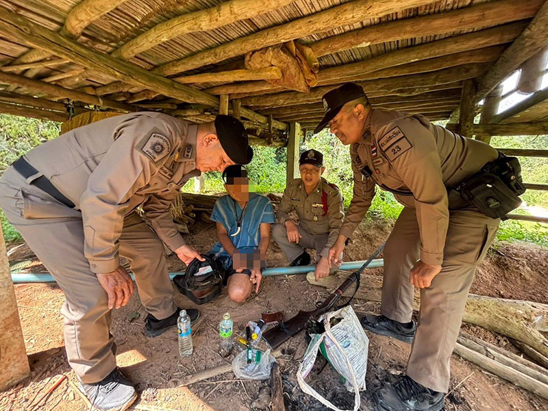 ต่อมานายประเสริฐได้ประสานเจ้าหน้าที่ชุดจับกุม เข้าไปตรวจสอบ เมื่อไปถึงพบชายลักษณะตามรับแจ้ง และชายฉกรรจ์อีก 1 คน กำลังนั่งเสพยาเสพติดกัน อยู่กระท่อมที่เกิดเหตุ เนื่องจากเป็นเหตุซึ่งหน้าจึงได้แสดงตัวเป็นเจ้าหน้าที่ตำรวจ ทำการจับกุมตัวทั้งสองคน สอบถามทั้งสองทราบชื่อนายคำนวล อายุ 36 ปี และนายซูติ อายุ 57 ปี (แยกดำเนินคดีอีกส่วนหนึ่ง)