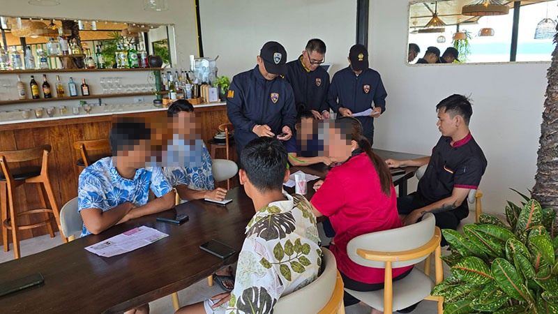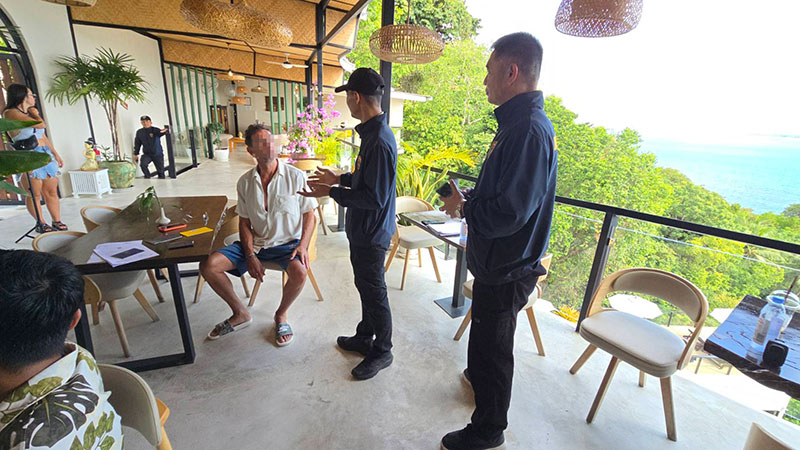 และรายที่ 3 เจ้าหน้าที่เข้าตรวจสอบเป็นกิจการร้านอาหารของคนต่างชาติสัญชาติเยอรมัน เมื่อเจ้าหน้าที่เข้าทำการตรวจสอบ พบในร้านมีคนต่างชาติสัญชาติเยอรมันชื่อนายริชาร์ด อายุ 35 ปี และนายอาร์เทอร์ อายุ 38 ปี และพบลูกจ้างสัญชาติเมียนมา จำนวน 1 ราย ทำงานอยู่จากการตรวจยังพบว่าร้านดังกล่าวไม่มีคนไทยทำงานแต่อย่างใด ชุดจับกุมจึงควบคุมทั้งหมด จากการตรวจสอบทั้ง 3 แห่งเจ้าหน้าที่ได้จับกุมคนต่างชาติได้ทั้งหมดจำนวน 8 ราย ประกอบด้วยสัญชาติอิสราเอล 1 ราย สัญชาติเยอรมัน 2 ราย สัญชาติฝรั่งเศส 1 ราย สัญชาติเมียนมาจำนวน 4 ราย ส่งตัวให้พนักงานสอบสวน สภ.เกาะพะงัน ดำเนินคดีตามกฎหมายต่อไป