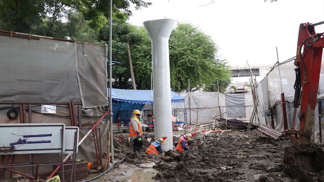" ปัจจุบันการก่อสร้างเป็นไปตามแผนงาน โดยจะเริ่มทำทีละเกาะ ซึ่งเสาจะทำลงเพียง 2 เกาะคือพหลโยธินและราชวิถี เนื่องจากยังเหลือทำอีกแค่ครึ่งวง ก็จะครบรอบวงกลมสะพานทางเชื่อม เมื่อทำเกาะพหลโยธินเสร็จก็จะไปทำเกาะราชวิถีต่อ อาจจะมีสะดุดช่วงฝนตกทำให้การเทคอนกรีตล่าช้าไปบ้าง ส่วนอุปสรรคอื่น เช่นการย้ายไฟฟ้าแรงสูงบริเวณเกาะพหลโยธินยังมีความล่าช้า ส่วนการก่อสร้างมีการใช้เสาเข็มที่เรียกว่า Screw Pile ช่วยให้การทำงานรวดเร็วขึ้น งานก่อสร้างสามารถทำได้เร็ว ไม่ใช้พื้นที่เยอะเพราะเราก่อสร้างกลางเมืองไม่ค่อยมีพื้นที่ ข้อดีของการใช้วิธีนี้คือ เสียงไม่ดัง ไม่สะเทือนเหมือนเสาเข็มตอก ลดมลภาวะ ซึ่งงานก่อสร้างในเมืองที่พื้นที่ทำงานน้อยจะใช้วิธีนี้ ..หากเป็นไปตามแผนดำเนินการก็จะแล้วเสร็จประมาณกลางปี 69 ขณะนี้กำลังเร่งทำอยู่หากเกาะพหลโยธินแล้วเสร็จก่อนโดยตั้งเป้าให้เสร็จช่วงต้นปี 69 ก็จะเปิดใช้งานก่อนไม่จำเป็นต้องรอให้แล้วเสร็จพร้อมกันแล้วค่อยเปิดใช้งานทั้งโครงการ " รองผู้ว่าฯกทม.กล่าว