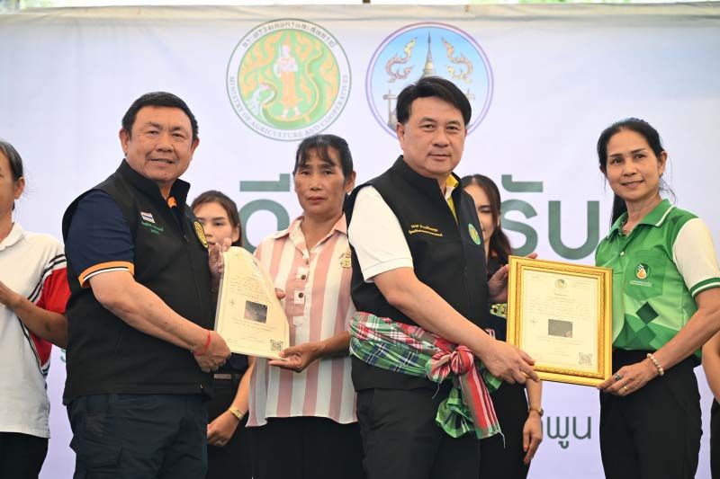โอกาสนี้ รมช.เกษตรฯ ได้มอบปัจจัยผลิตทางการเกษตรให้กับเกษตรกร ได้แก่ โฉนดที่ดินเพื่อการเกษตร โฉนดต้นไม้ โฉนดต้นยางพารา พืชผักพันธุ์ดี และพันธุ์ปลา เพื่อให้เกษตรกรนำไปเลี้ยงชีพสร้างรายได้ต่อไป