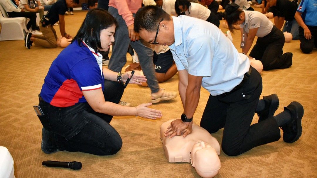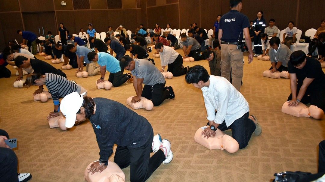 โดย นายกสมาคมฯ เน้นย้ำว่า การช่วยชีวิตคนเมื่อเกิดเหตุฉุกเฉินเป็นสิ่งจำเป็นที่ทุกคนควรได้รับการฝึกอบรม โดยเฉพาะการช่วยอย่างถูกวิธีและการโทรขอความช่วยเหลือตามขั้นตอนที่ถูกต้อง เพราะ ทุกวินาทีมีค่า การอบรมในวันนี้จะช่วยให้ทุกคนมีความมั่นใจในการช่วยชีวิตผู้อื่น และสร้างความพร้อมในการต้อนรับนักท่องเที่ยวในช่วงปลายปีนี้ ///-026