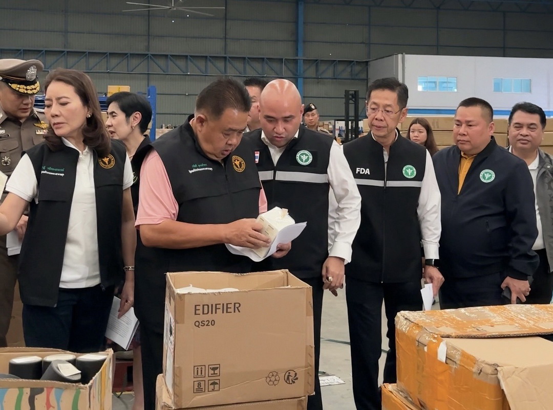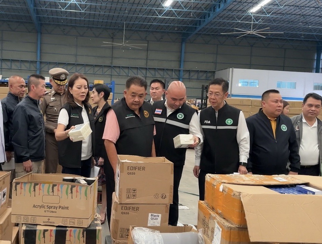 สธ.-ปคบ.บุกทลาย! โกดังเถื่อนสมุทรปราการ ยึดคอนแทคเลนส์-ยา-อาหารปลอมกว่า 17 ล้านบาท พบทุนจีนลักลอบนำเข้า