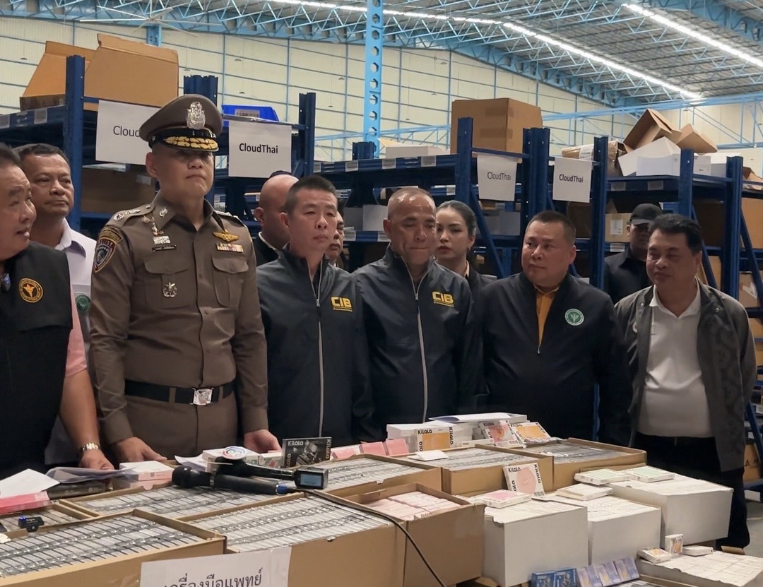 วันที่ 17 ตุลาคม 2568 นายวรโชติ สุคนธ์ขจร รัฐมนตรีช่วยว่าการกระทรวงสาธารณสุข พร้อมด้วยคณะผู้บริหารจากกระทรวงสาธารณสุข (สธ.) และสำนักงานคณะกรรมการอาหารและยา (อย.) รวมถึง พล.ต.ต. คงกฤช เลิศสิทธิกุล ผู้บังคับการปราบปรามการกระทำความผิดเกี่ยวกับการคุ้มครองผู้บริโภค (ผบก.ปคบ.) ได้ร่วมกันแถลงผลการจับกุมและทำลายแหล่งจัดเก็บและกระจายสินค้าผิดกฎหมายมูลค่ากว่า 17,873,500 บาท ในพื้นที่จังหวัดสมุทรปราการ