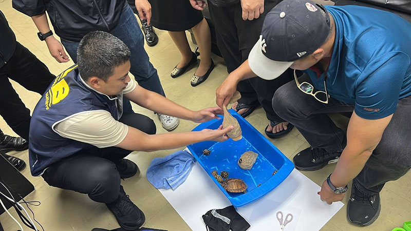 ตำรวจป่าไม้ สกัดจับขบวนการค้าสัตว์ป่าข้ามชาติ รวบ 3 ผู้ต้องหาชาวไต้หวัน ขณะกำลังลักลอบขนเต่าดาว กิ้งก่าจระเข้ กว่า 52 ชีวิต ออกนอกประเทศ เผยกลวิธีขนลำเลียงสุดทารุณ มอมยาสลบจนหมดสติ จับยัดอัดใส่ถุงหน่องผูกติดกับขาเดินเนียนเข้าสนามบิน