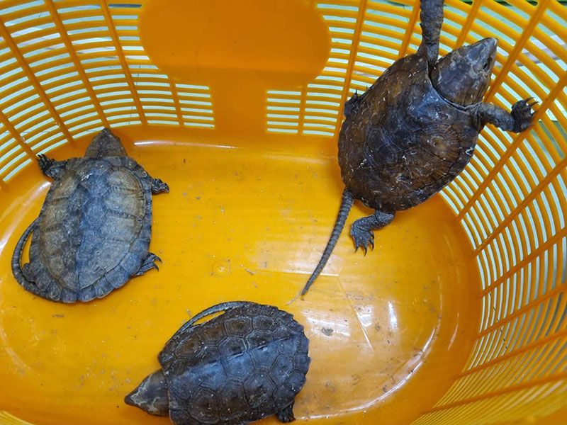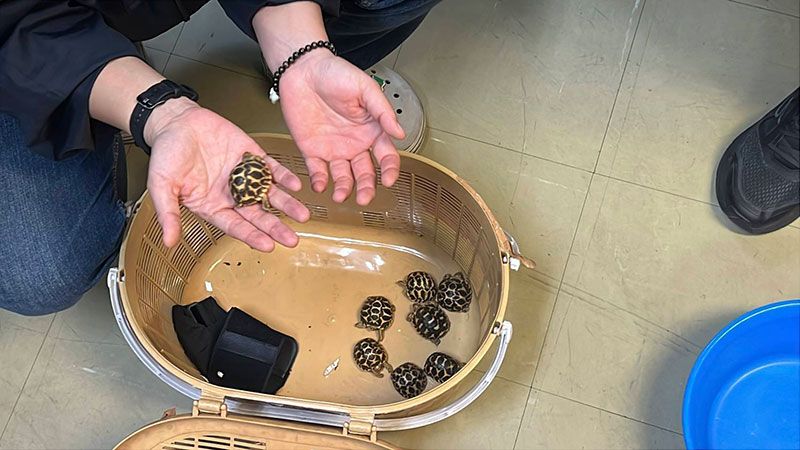 ประกอบด้วย นาย ชู ชิง ชุง (MR. HSU CHING CHUNG) อายุ 53 ปี นาย หง จื้อ เสี่ยน (MR. HONG ZHI-XIAN) อายุ 40 ปี นาย หยาง จง จู๋ (MR.YANG TSUNG-JU) อายุ 36 ปี พร้อมของกลาง สัตว์ป่าหายากรวมจำนวน 52 ตัว แบ่งเป็น เต่าจักร 3 ตัว, เต่าดาวอินเดีย 1 ตัว, เต่าแมงมุม 1 ตัว, ลูกเต่าดาว 32 ตัว, เต่าดาว 2 ตัว, เต่าปูลู 4 ตัว, เต่าภูเขา 2 ตัว และกิ้งก่าจระเข้ 7 ตัว โดยจับกุมทั้งหมดได้ที่ ท่าอากาศยานดอนเมือง กทม.