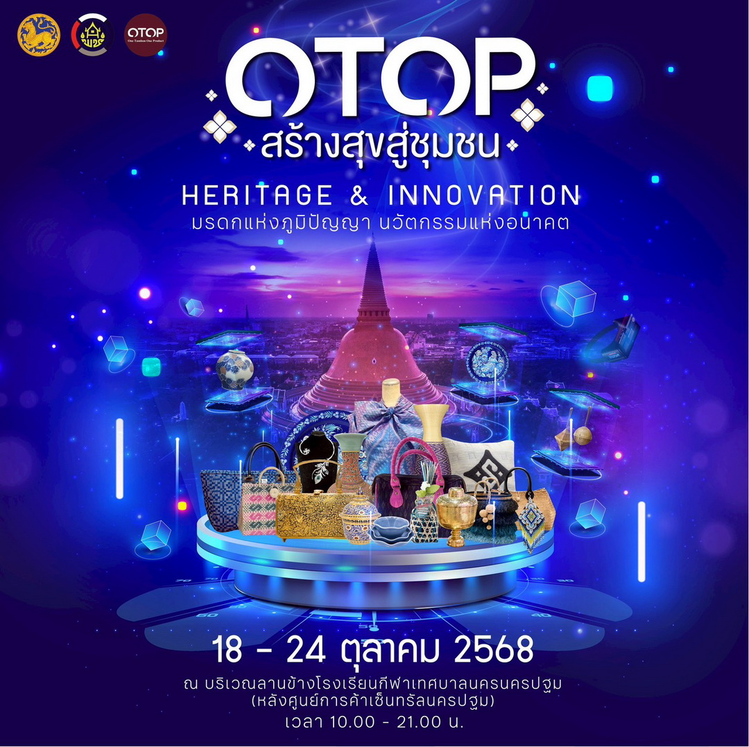 วันที่ 17 ตุลาคม 2568 ผู้สื่อข่าวรายงานว่า จังหวัดนครปฐมเตรียมพร้อมต้อนรับนักท่องเที่ยวและประชาชนในพื้นที่สู่มหกรรมสินค้า OTOP ครั้งใหญ่ ในงาน ‘OTOP สร้างสุขสู่ชุมชน Heritage & Innovation มรดกแห่งภูมิปัญญา นวัตกรรมแห่งอนาคต’ ซึ่งจัดโดยกรมการพัฒนาชุมชน กระทรวงมหาดไทย โดยงานจะจัดขึ้นตั้งแต่วันที่ 18–24 ตุลาคม 2568 ณ ลานข้างโรงเรียนกีฬาเทศบาลนครนครปฐม (หลังเซ็นทรัลนครปฐม)