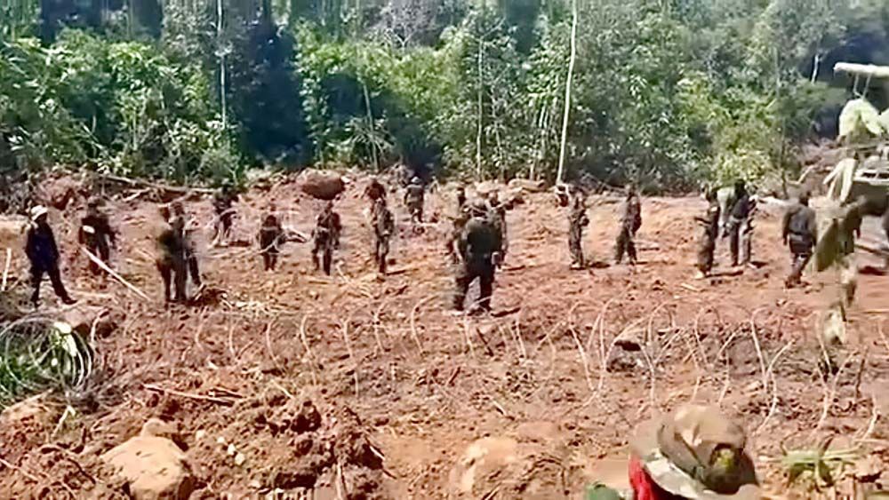 ซึ่ง ฉก.นย.ตราด ได้ตัดสินใจเปิดเส้นทางขึ้นไปยังบ้าน 3 หลังทันทีเพื่อไปตั้งฐานทหาร เมื่อช่วงสัปดาห์ที่ผ่านมา โดยมีระยะทางกว่า 4 กิโลเมตร ระหว่างทางต้องฝ่าทุ่นระเบิดจำนวนมาก(ทุ่นระเบิดเก่าสมัยสงครามเขมรแดง) จำเป็นต้องสแกนหาทุ่นระเบิดก่อนแล้วใช้เครื่องจักรหนักเปิดเส้นทางไปเรื่อย ๆ พร้อมมีรถหุ้มกาะร่วมปฏิบัติหน้าที่ด้วย เมื่อเจอทุ่นระเบิดได้ทำลายทิ้งทันที เพื่อความปลอดภัยของกำลังพล