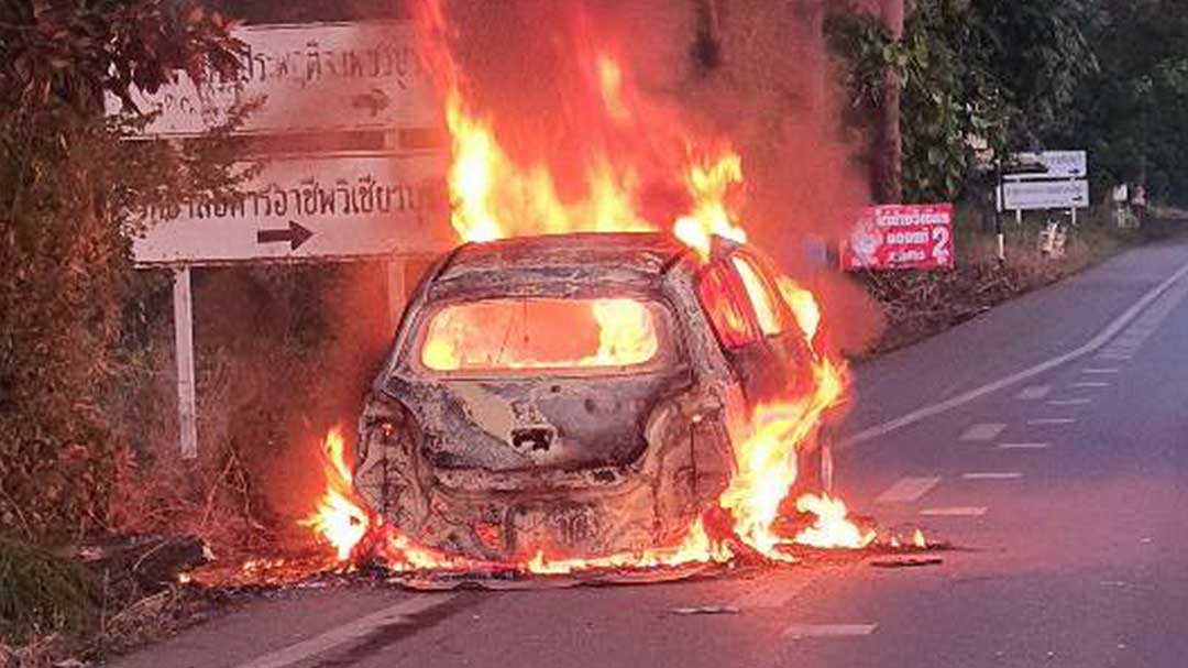 ที่เกิดเหตุ พบรถยนต์เก๋งยี่ห้อมิตซูบิชิ สีขาว ถูกเพลิงลุกไหม้อย่างรุนแรงบริเวณใต้ท้องรถ เจ้าหน้าที่ใช้เวลาประมาณ 20 นาที จึงสามารถควบคุมเพลิงไว้ได้ โดยไม่มีผู้ได้รับบาดเจ็บ