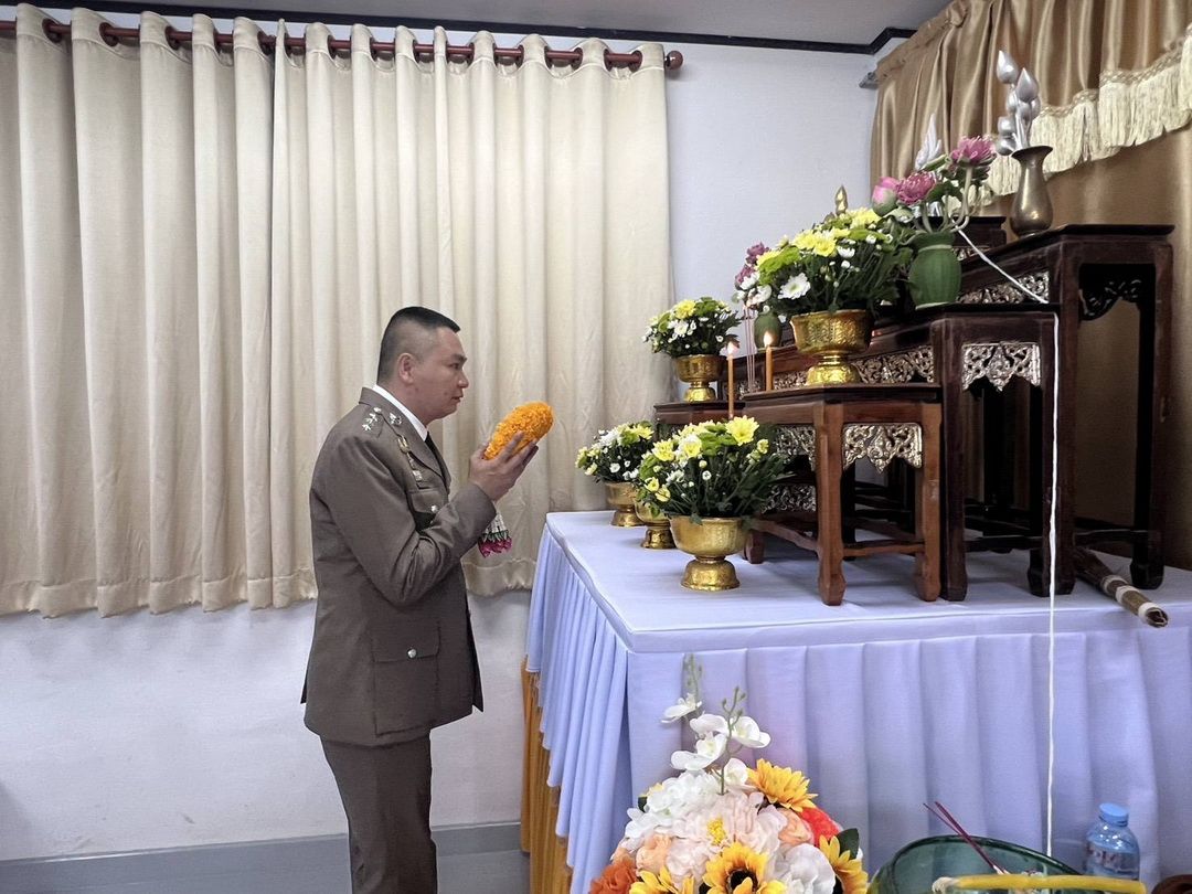 พิธีเริ่มต้นด้วยการประกอบพิธีทางศาสนาและพิธีสงฆ์ ณ ห้องพิธีสงฆ์ อาคารชั้น 2 สถานีตำรวจภูธรพบพระ โดยมีการถวายเครื่องไทยธรรม สังฆทาน และภัตตาหาร เพื่อความเป็นสิริมงคล และอุทิศส่วนบุญกุศลให้แก่ข้าราชการตำรวจที่เสียชีวิต โดยมีคณะกรรมการ กต.ตร.สภ.พบพระ ร่วมเป็นเกียรติในพิธี