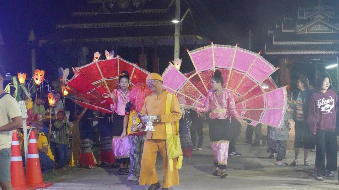 โดยวันที่ 3 พ.ย.2568 (วันจันทร์) มีขบวนแห่ผ้าป่า ถวายผ้าป่าประจำปี (17.00 น.) และวันที่ 5 พ.ย. (วันพุธ) มีขบวนแห่ กระทงไทใหญ่ (สิบสองมนล่องผ่องไต) จาก อบต.แม่เงา ไปยังวัดต่อแพ พร้อมการประกวดกระทงเล็ก และพิธีลอยกระทง (18.00 น.)