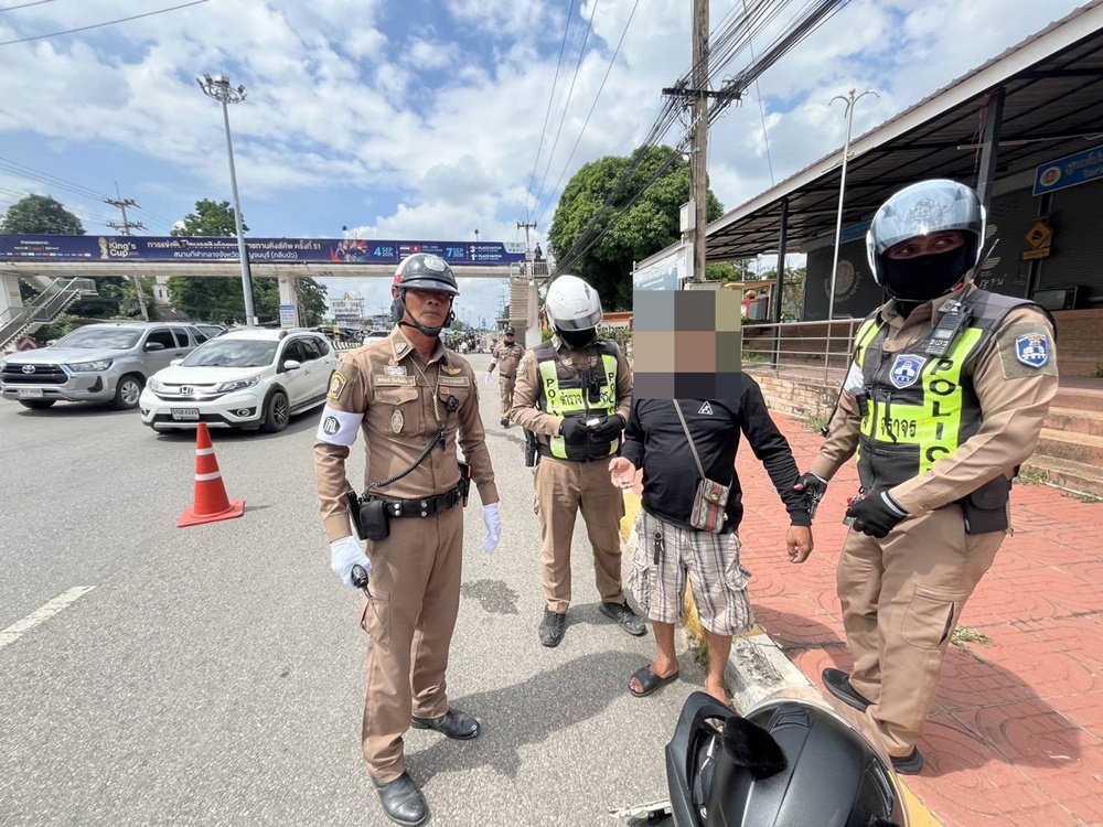 ผู้การ ตร.กาญจน์สั่งตั้งด่านกวดขันวินัยจาจร ป้องกันปราบปรามยาเสพติด ตะครุบหนุ่มใหญ่ขับขี่ จยย.ไม่มีใบขับขี่ซุกยาบ้า 38 เม็ด แถมตรวจเจอฉี่สีม่วง โดน 4 ข้อหา พบประวัติเคยถูกล่อซื้อยาบ้ามาก่อน